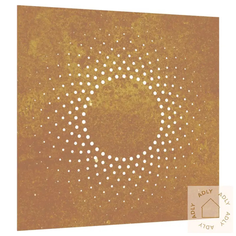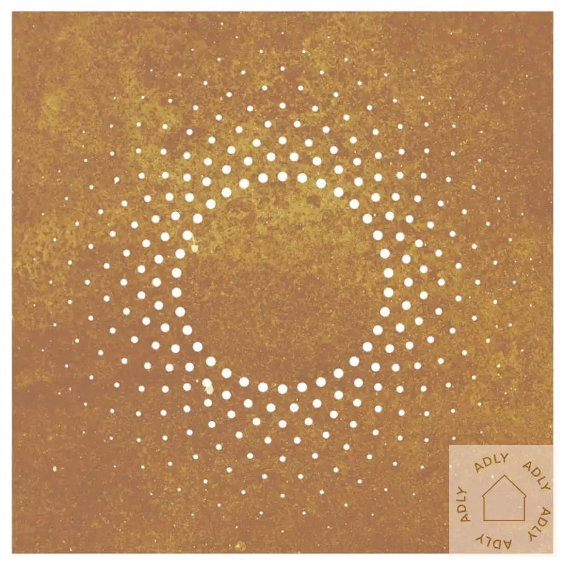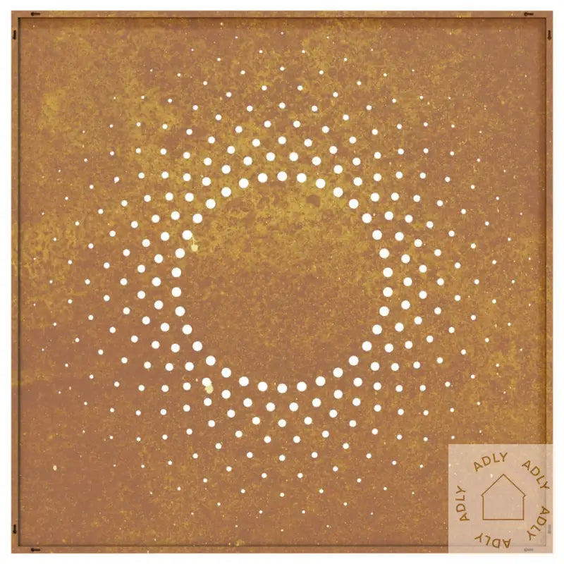 Slitesterkt materiale: Cortenstål – også kjent som forhåndsrustet stål – er ekstra motstandsdyktig mot vær og vind. Når det utsettes for luft og fuktighet, utvikler cortenstålet gradvis et vakkert, rustent beskyttelseslag som gjør at du slipper å bekymre deg for slitasje eller tidskrevende vedlikehold. Det gir deg et produkt som ser eksklusivt ut, holder seg lenge og koster lite i reparasjoner. Den varme bruntonen fra forhåndsrustet stål gir dessuten dekorasjonen et røft og moderne uttrykk som virkelig fanger blikket blant hagemøbler, planter eller ved terrassen.Utsøkt design: Veggdekorasjonen er laget i solid metall og har et detaljert, utstanset solmønster. Dette gir liv til hagen og skaper en lys og naturlig stemning på uteplassen, enten du henger den opp ved sittegruppen eller som bakgrunn til dine andre møbler til hjemmet.Enkel montering: Solid og praktisk – denne utendørs dekorasjonen kommer med ferdige hull på baksiden, slik at du lett kan feste den på både vegg og gjerde der det passer best. Du trenger bare standard verktøy.Godt å vite: