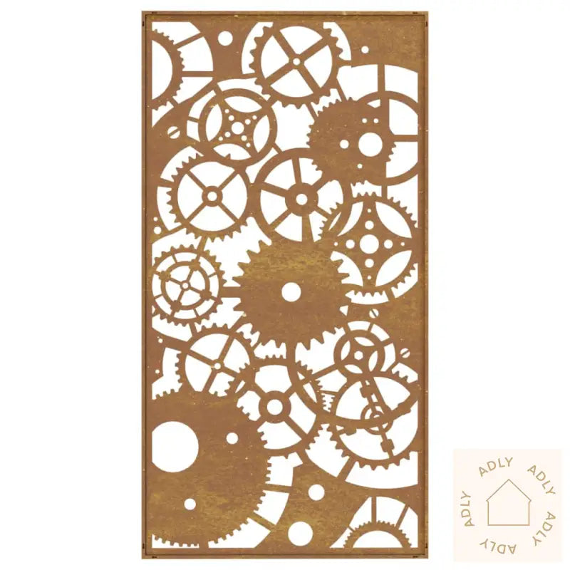 Slitesterkt materiale: Denne veggdekorasjonen er laget i cortenstål, også kjent som forhåndsrustet stål, og er kjent for sin naturlige motstand mot korrosjon og vær. Etter første eksponering for regn og luft dannes det et vakkert rustlag som beskytter materialet mot videre slitasje, slik at du slipper å bekymre deg for hyppig vedlikehold eller maling. Det gir deg mindre jobb og færre kostnader over tid – perfekt for deg som vil ha utendørsmøbler eller dekorasjoner som varer. Den varme brunfargen og den røffe finishen på cortenstålet skaper en spennende kontrast mot grønne planter, og gir uterommet ditt et stilrent og industrielt preg.Utsøkt design: Veggdekorasjonen har et gjennomført hulmønster inspirert av et girmønster. Dette gir et dynamisk uttrykk som virkelig får hagen til å føles levende og innbydende – uansett om du legger vekt på stil eller ønsker et element som fanger oppmerksomheten.Enkel montering: Montering er superenkel takket være ferdige hull på baksiden. Det gjør at du raskt kan pryde hageveggen eller gjerdet ditt, og enkelt kombinere denne dekorasjonen med øvrige møbler til hjemmet eller uteplassen.Godt å vite: