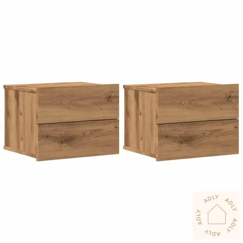 Disse veggmonterte nattbordene i artisan eik gir en smart og stilig løsning for deg som vil maksimere plassen på soverommet eller andre oppholdsrom. Det flytende designet gir rommet et moderne preg samtidig som gulvet holdes fritt, noe som gjør rengjøringen enklere og får området til å virke ryddigere.