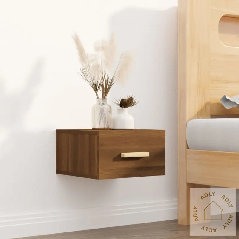 Dette veggmonterte nattbordet i brun eik kombinerer stil og funksjon, og passer perfekt for deg som ønsker å maksimere plassen på soverommet eller andre steder i hjemmet. Med en plassbesparende veggmontering er det enkelt å holde gulvet ryddig, samtidig som du får en praktisk oppbevaringsløsning og en lekker dekorasjon til tomme vegger. Enten du ser etter smarte møbler til hjemmet eller vil skape et gjennomført uttrykk sammen med dine utendørsmøbler eller hagemøbler, tilbyr dette nattbordet fleksibilitet og et moderne utseende.