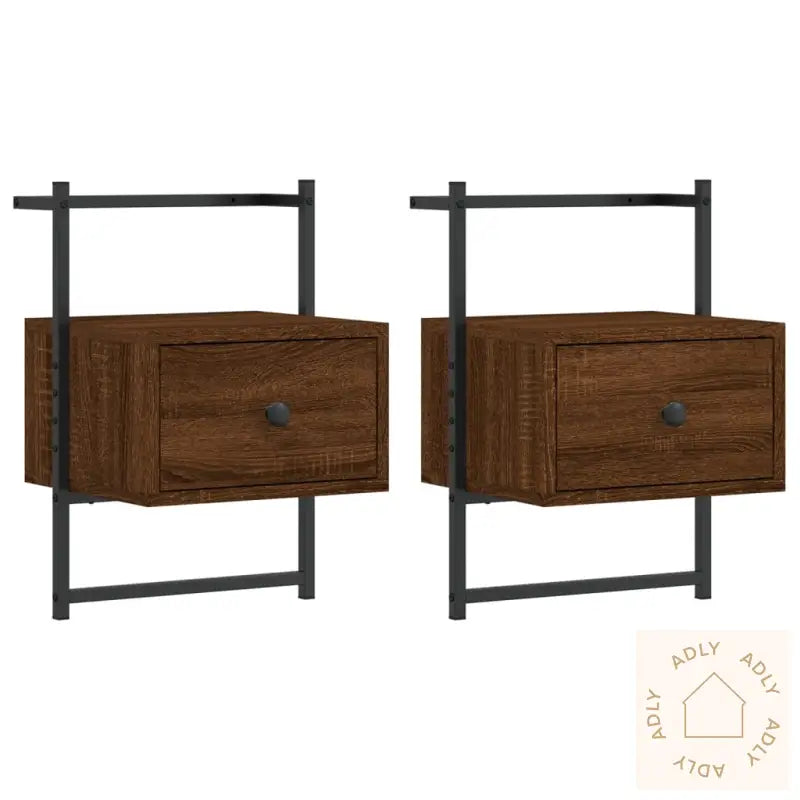 Disse veggmonterte nattbordene i brun eik er en smart og plassbesparende løsning når du trenger praktisk oppbevaring og stilfullt design i hjemmet ditt. De hjelper deg med å holde gulvet fritt og gir samtidig et ryddig og moderne uttrykk som passer perfekt sammen med forskjellige typer møbler til hjemmet.