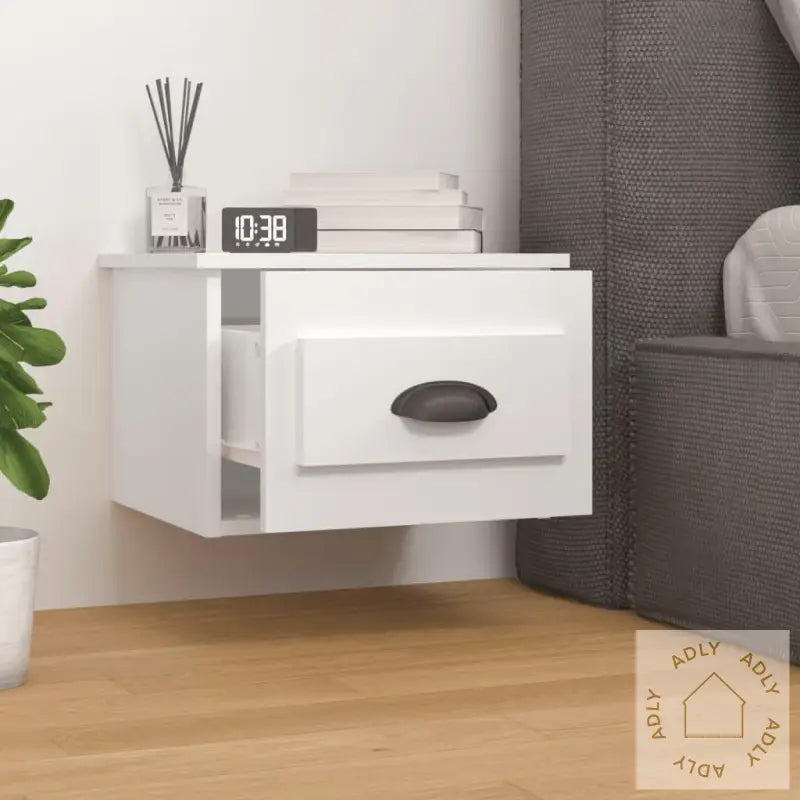 Slitesterkt materiale: Laget av konstruert tre av høy kvalitet, som kjennetegnes av en glatt finish. Materialet gir både styrke og stabilitet, og sikrer lang levetid – perfekt for deg som ønsker varige møbler og trygg oppbevaring nær sengen. I tillegg tåler materialet fuktighet, så du trenger ikke bekymre deg om søl eller støv.Smart oppbevaringsplass: Det veggmonterte nattbordet leveres med en praktisk skuff som gjør det enkelt å holde orden på småting og at de alltid er lett tilgjengelige. Hold mobiltelefon, bok eller briller organisert slik at du får mer plass i soverommet.Plassbesparende og stilren: Fordi nattbordene henges rett på veggen, frigjør du gulvplass og rommet føles større og ryddigere. Perfekt for de som ønsker funksjonelle møbler til hjemmet uten å gå på kompromiss med stilen!Solid og allsidig bordplate: Den stabile toppen gir ekstra plass til å vise frem dekorative elementer, fotorammer, potteplanter eller lamper – ideelt for å løfte atmosfæren på soverommet. Velg nattbord som matcher stilen på øvrige møbler og bokhyller og stående hyller i rommet.Godt å vite: