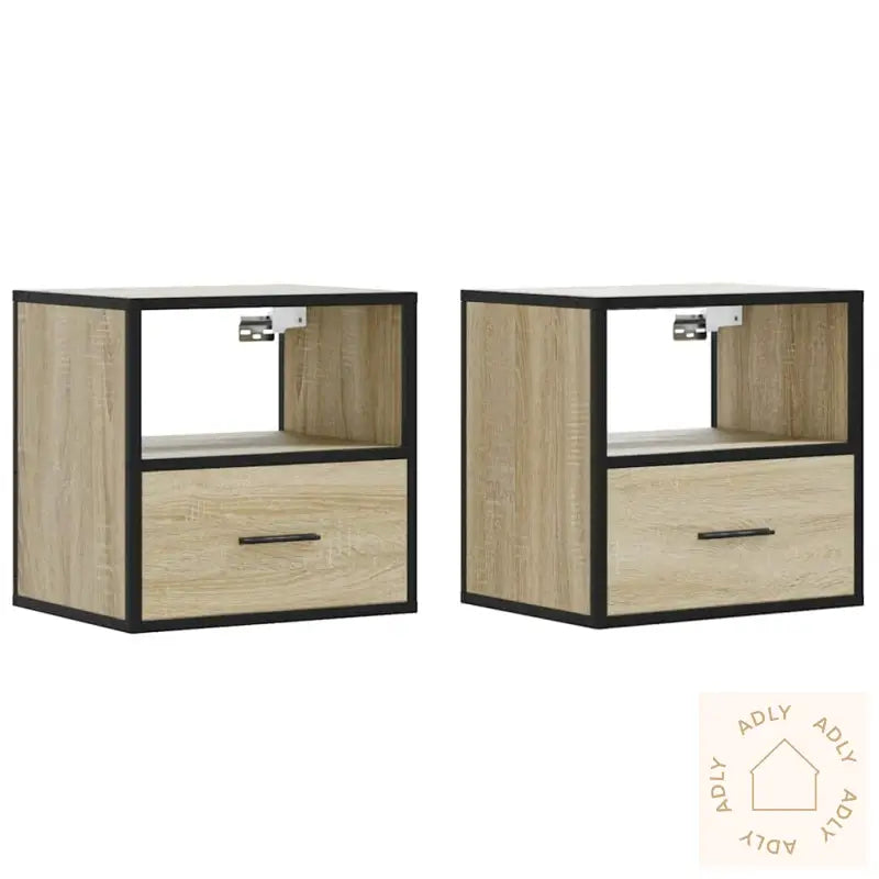 Stabilt og slitesterkt materiale: Konstruert tre gir en jevn og solid overflate som både tåler daglig bruk og holder seg pent over tid. Det robuste materialet er motstandsdyktig mot både fuktighet og sprekker, så du får møbler du kan stole på lenge – perfekt som en del av praktiske møbler til hjemmet.Stabil og langvarig ramme: Den sterke metallrammen sørger for ekstra styrke og holdbarhet. Materialet gir god støtte og stabilitet, samtidig som det sikrer at nattbordene tåler en total lastekapasitet på opptil 50 kg.Rikelig med lagringsplass: Med en hylle og en romslig skuff får du god plass til magasiner, bøker, briller og annet nødvendig du vil ha lett tilgjengelig ved siden av sengen. Alt kan holdes organisert og innen rekkevidde, så du slipper rot på nattbordet.Veggmontert design: Takket være det flytende designet kan du montere nattbordene direkte på veggen og enkelt utnytte plassen under til annet nødvendig eller bare la det være åpent for en minimalistisk look. Dette gir mer rom og fleksibilitet, noe som gjør møbelet spesielt egnet for mindre soverom eller steder hvor gulvplassen er begrenset.Solid topp: Den solide toppen i sonoma eik gir en fin overflate hvor du kan plassere bordlamper, vekkerklokker, bilderammer, potteplanter eller dekorasjoner, slik at du alltid har det aller mest nødvendige på plass innen rekkevidde.Godt å vite:
