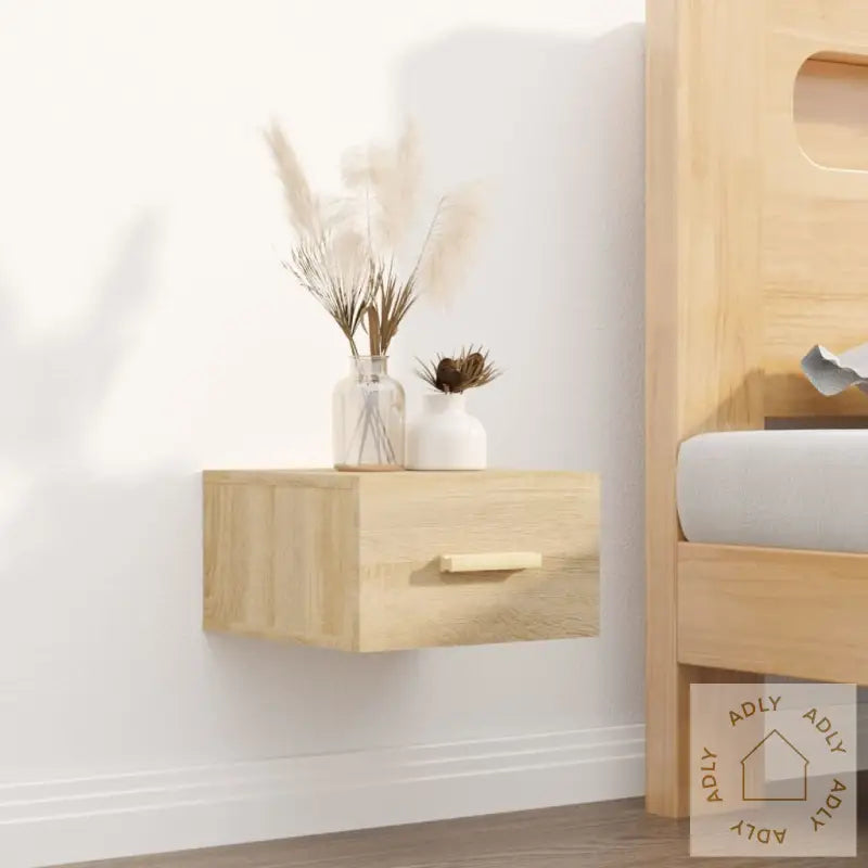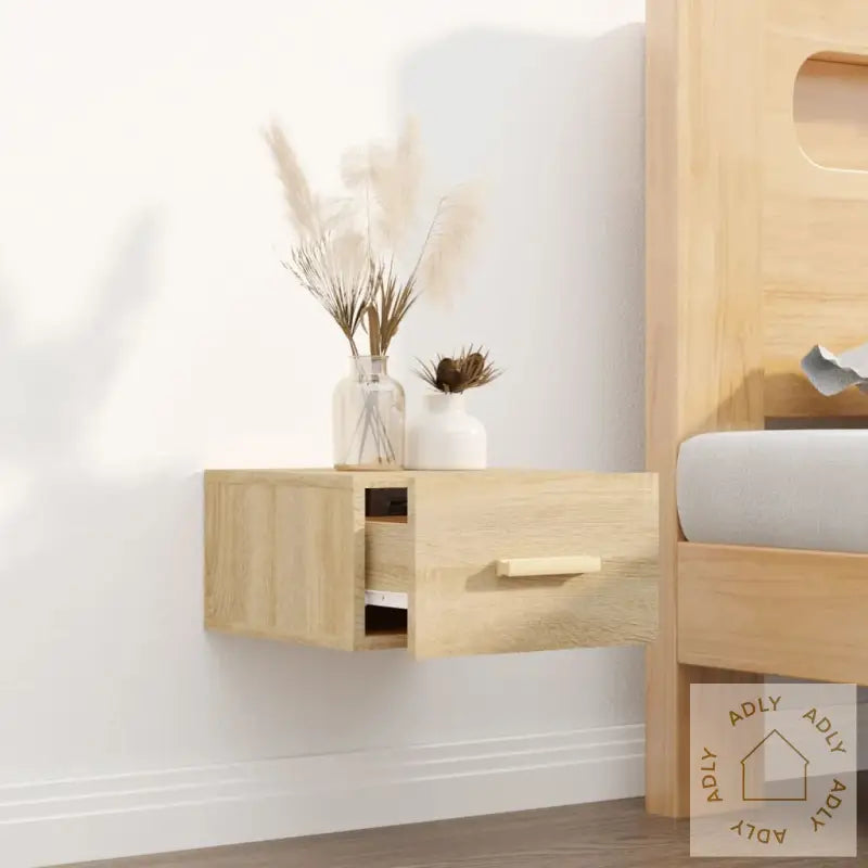 Dette veggmonterte nattbordet i sonoma eik gir en smart og moderne måte å maksimere plassen din på, spesielt om du har mindre rom eller ønsker ryddige omgivelser. Samtidig blir dette nattbordet et dekorativt blikkfang for ellers tomme vegger – perfekt for deg som setter pris på funksjonelle og stilrene møbler til hjemmet.