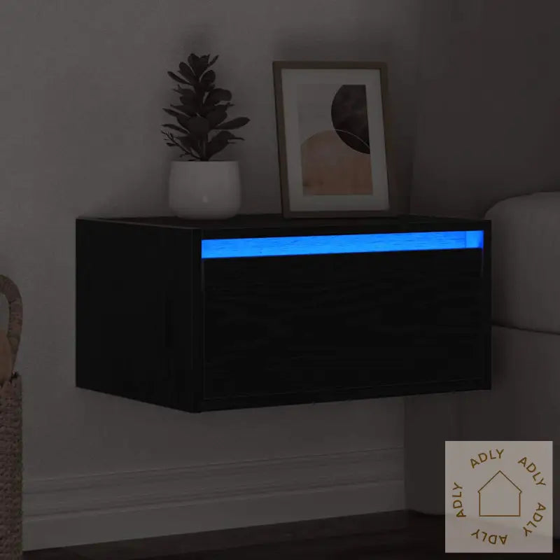 Oppgrader soverommet med dette stilige veggmonterte nattbordet i svart eik med LED-lys! Det passer enkelt sammen med ulike møbler til hjemmet, og gir et moderne og funksjonelt løft til soverommet ditt.