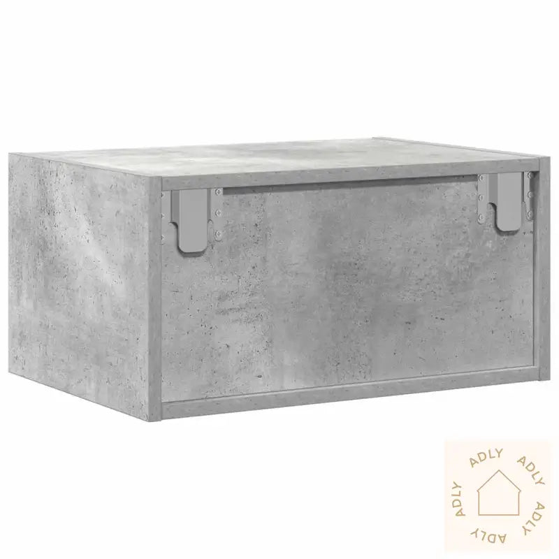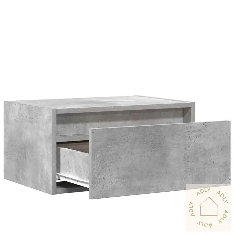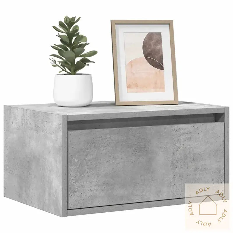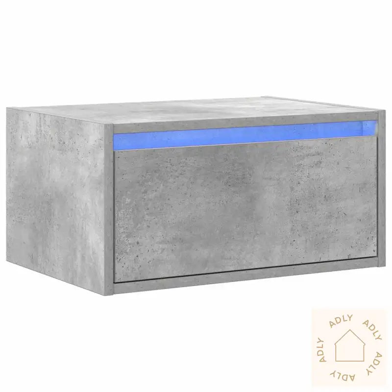 Skruer og plugger for veggmontering følger ikke med. For best resultat bør du velge festemidler som passer dine veggtyper – kontakt gjerne fagfolk hvis du er usikker, og følg monteringsinstruksjonene nøye.Nattbordet har USB-kontakt, og du trenger en sertifisert 5V USB-strømkilde (ikke inkludert) for å bruke LED-lysene.Farge: BetonggråMateriale: Konstruert treSamlet mål: 51 x 35,5 x 25 cm (B x D x H)Mål skuff: 47 x 28,5 x 19 cm (B x D x H)Montering kreves: Ja