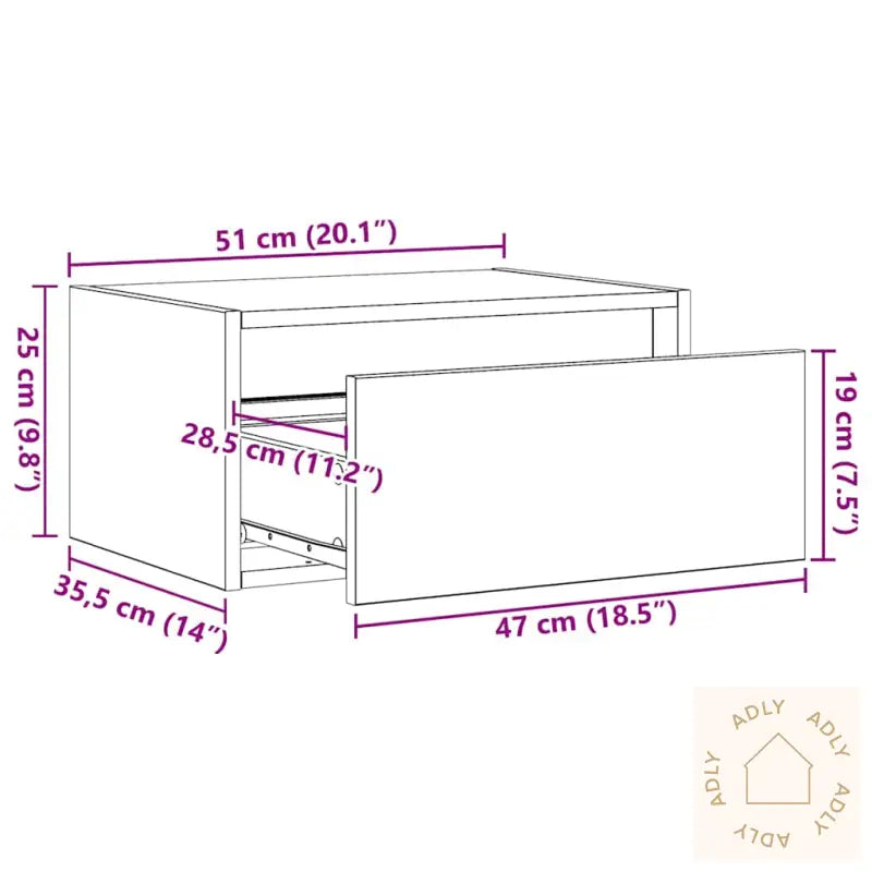 Stabilt og slitesterkt materiale: Nattbordet er laget av konstruert tre – et robust og pålitelig materiale med jevn overflate. Det holder seg pent selv ved daglig bruk, er motstandsdyktig mot fukt og vridning og vil derfor tåle mange år i hjemmet ditt.Rikelig med lagringsplass: Du får god plass til magasiner, bøker, briller og annet nødvendig tilbehør. Det hjelper deg å holde soverommet ryddig, med alt lett tilgjengelig rett ved sengen.RGB LED-lys for en hyggelig atmosfære: Skap akkurat den stemningen du vil ha! Med justerbare LED-lys kan du velge mellom ulike moduser og farger, og stille inn lysstyrken slik at soverommet får et unikt og behagelig preg – perfekt både til lesing, avslapning eller som nattlys.Veggmontert design: Ved å montere nattbordet på veggen frigjør du gulvplass og gjør det enklere å holde området rundt sengen rent og romslig. Den svevende effekten gir et luftig uttrykk som passer godt sammen med annen innredning eller hagemøbler du måtte ha i nærheten.Solid topp: Den solide overflaten på nattbordet er ideell for alt fra bordlamper, vekkerklokker, bilderammer og små potteplanter til annet nødvendig. Perfekt hvis du ønsker å kombinere funksjon og dekorasjon!Godt å vite: