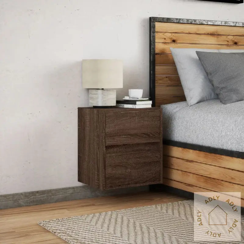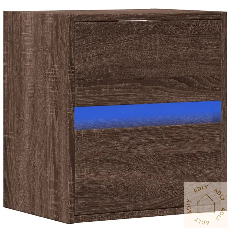 Oppgrader soverommet ditt med dette stilige, veggmonterte nattbordet i brun eik med LED-lys! Det smarte designet passer perfekt til ulike møbler til hjemmet – enten du har moderne eller mer klassiske favoritter.