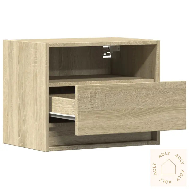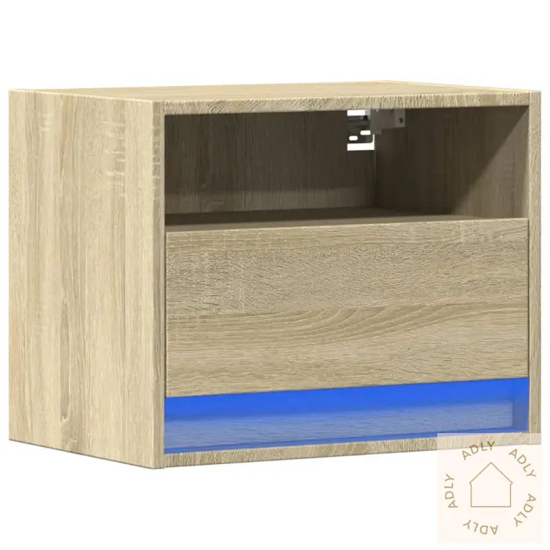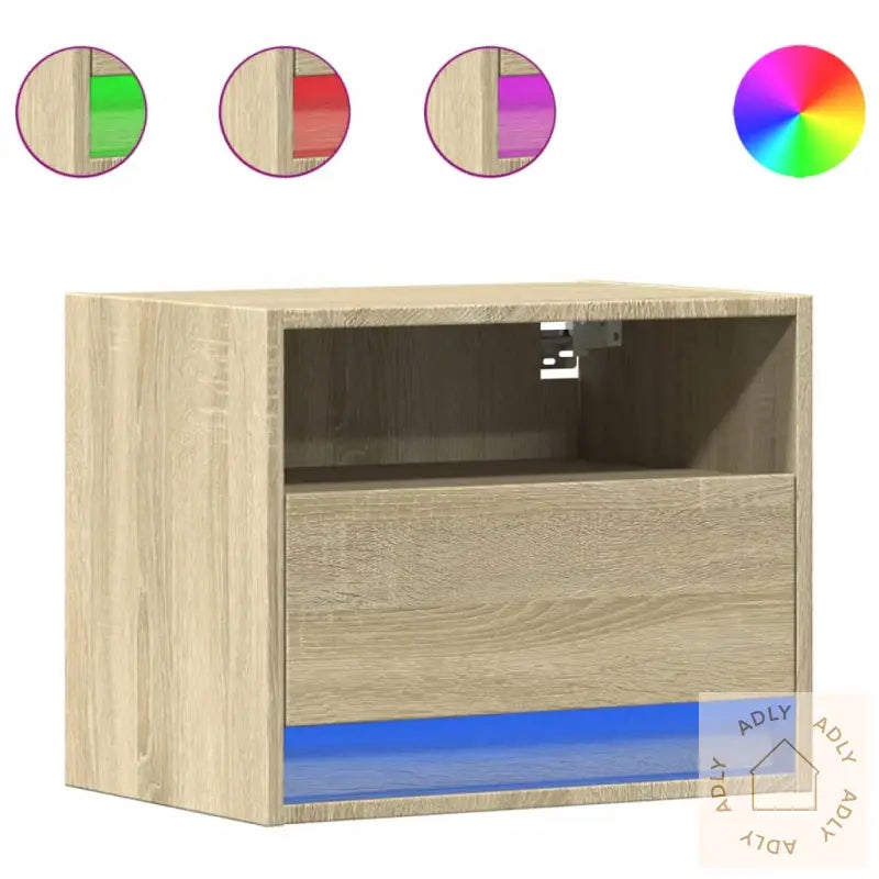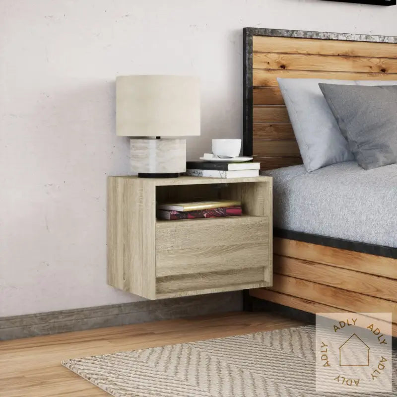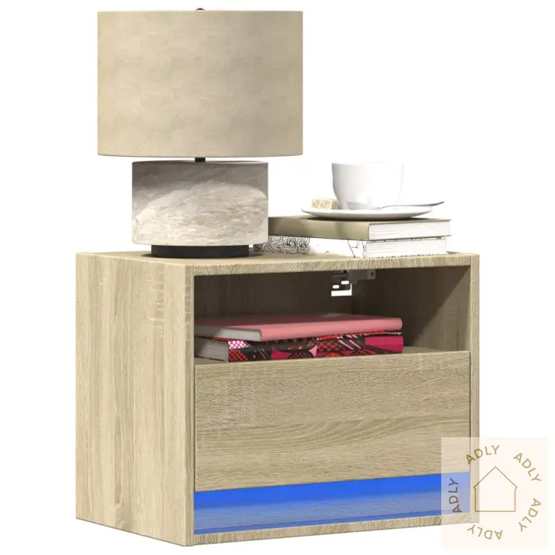 Skruer og plugger til innvendige vegger følger ikke med. For best resultat anbefaler vi å bruke festemateriell som er tilpasset akkurat dine vegger, eller spør en fagperson om råd. Følg monteringsinstruksjonene nøye.Nattbordet har USB-kontakt til LED-lysene, og trenger en godkjent 5V USB-strømkilde (ikke inkludert).Farge: Sonoma EikMateriale: Konstruert treMål: 50 x 34 x 40 cm (L x B x H)Antall skuffer: 1Med LED-lysKrever monteringDette smarte nattbordet i sonoma eik er perfekt for deg som liker praktiske løsninger og ønsker en stilig oppgradering av soverommet. Kvalitetsmaterialer og justerbar belysning gjør nattbordet til et spennende tillegg til ditt hjem. Kombiner gjerne med andre møbler til hjemmet i samme stil for et gjennomført uttrykk!
