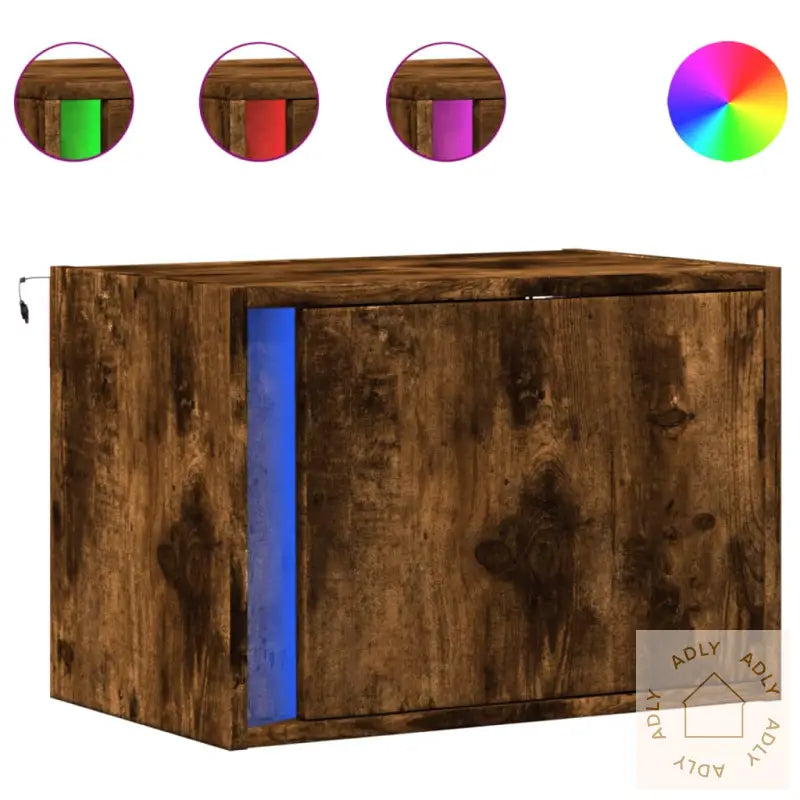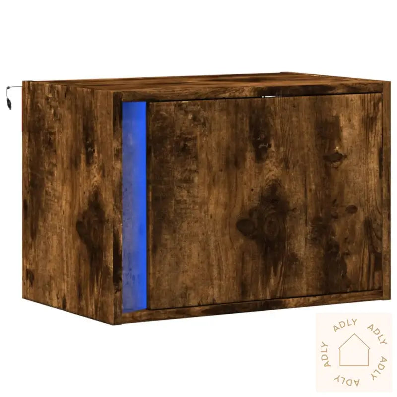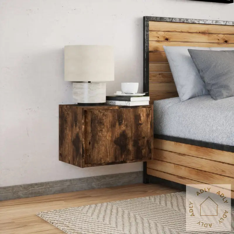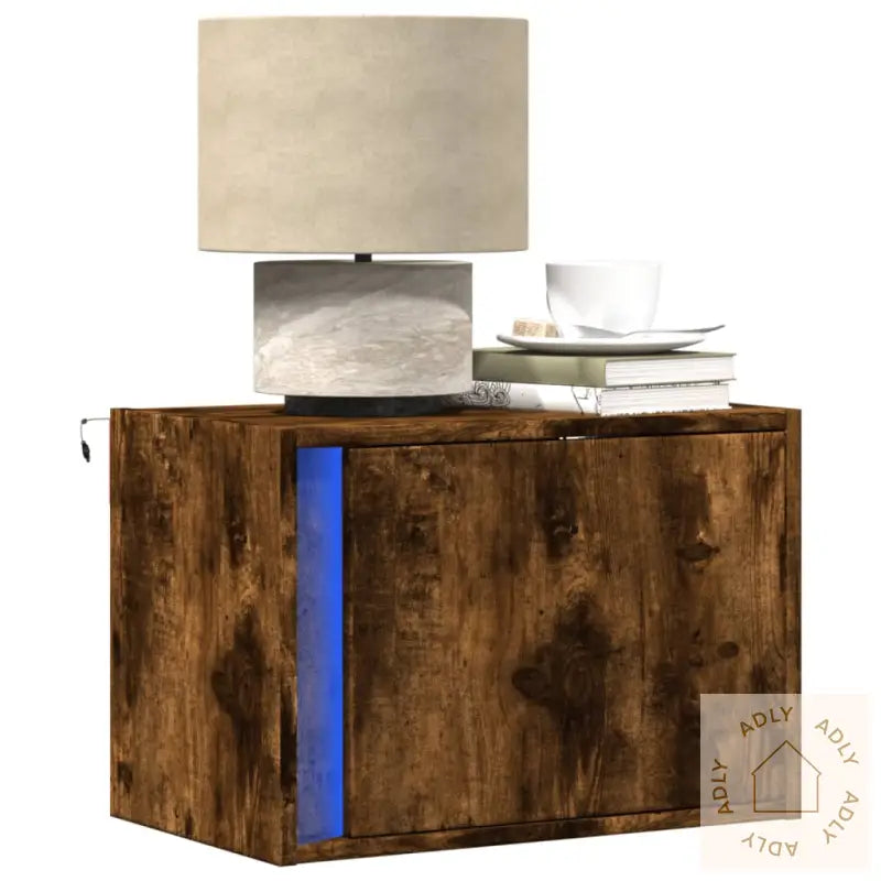 Skruer og plugger til bruk mot innvendig vegg følger ikke med. Velg alltid monteringstilbehør som passer til nettopp dine vegger. Er du usikker anbefales det å rådføre seg med en fagperson og å følge monteringsanvisningen nøye.Nattbordet kommer med USB-kontakt, og krever en 5V USB-strømkilde (ikke inkludert). Bruk en sertifisert strømkilde for trygg bruk.Farge: røkt eikMateriale: konstruert treMål: 50 x 31 x 35 cm (L x B x H)Antall skuffer: 1Med LED-lysMontering kreves: jaDette veggmonterte nattbordet er et smart tillegg til ethvert soverom, og passer perfekt sammen med andre moderne møbler eller hagemøbler dersom du ommøblerer eller trenger flere stilrene løsninger i hjemmet.