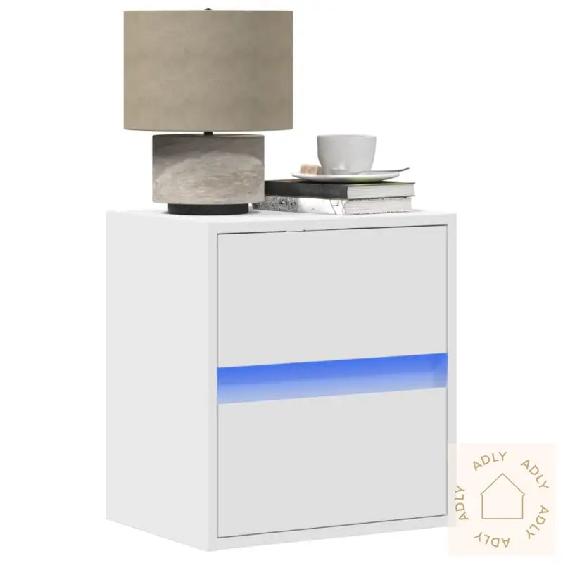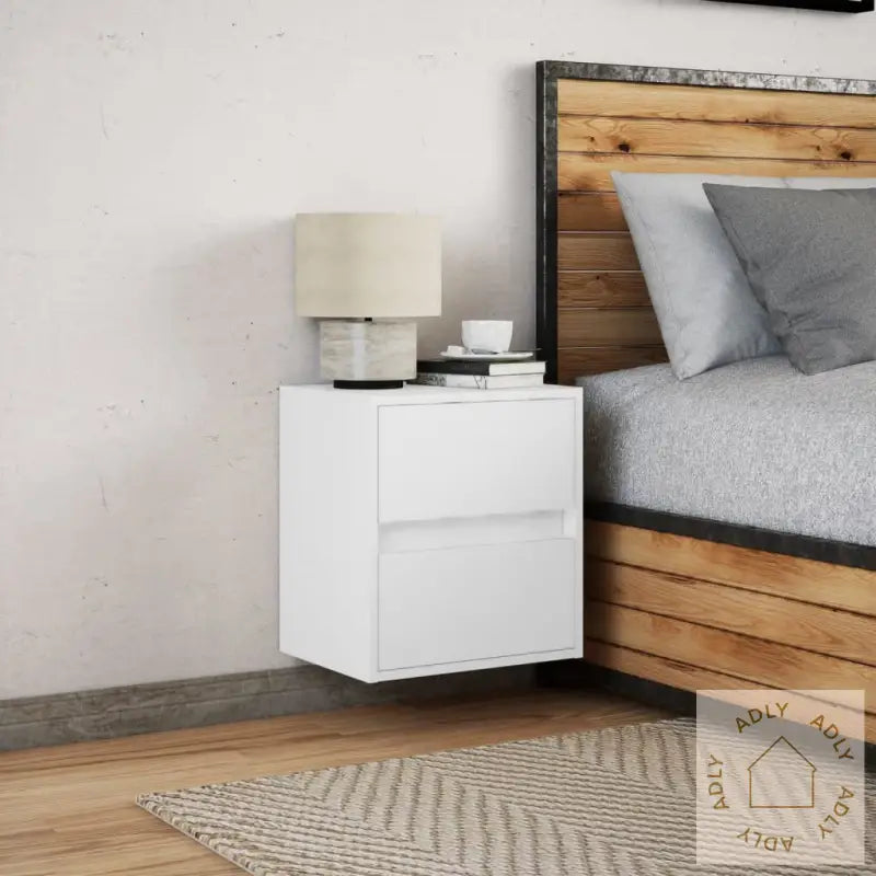 Skruer og plugger for veggmontering følger ikke med. Velg riktige festemidler til din veggtype, og vurder å rådføre deg med fagfolk om du er usikker. Følg alltid bruksanvisningen nøye for sikker og stabil montering.Nattbordet har USB-kontakt og må kobles til en sertifisert 5V USB-strømkilde (ikke inkludert), så du enkelt kan få strøm til LED-lyset.Farge: HvitMateriale: Konstruert treMål: 41 x 31 x 45 cm (L x B x H)Antall skuffer: 2Med LED-lysMontering kreves: ja