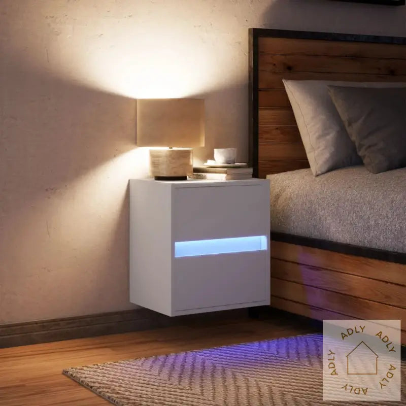 Oppgrader soverommet med dette stilige, veggmonterte nattbordet med integrerte LED-lys! Designet passer perfekt inn sammen med dine andre møbler og gir et moderne preg til hjemmet. Dette nattbordet er ikke bare et dekorativt element blant dine møbler til hjemmet, men også svært funksjonelt og smart utformet for daglig bruk.