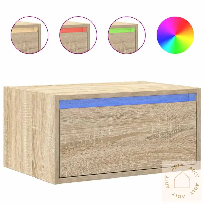 Oppgrader soverommet og få et enda mer innbydende hjem med dette veggmonterte nattbordet i sonoma eik, komplett med moderne RGB LED-lys. Dette nattbordet glir sømløst inn sammen med andre møbler til hjemmet uansett stil, og gir både funksjonalitet og et ekstra stilig preg på rommet ditt!