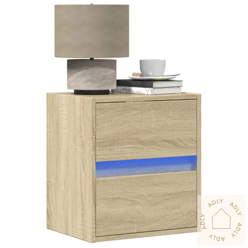 Oppgrader enkelt soverommet ditt med dette veggmonterte nattbordet med LED-lys i stilig sonoma eik! Det passer perfekt sammen med ulike typer møbler til hjemmet, enten du har stramme, moderne linjer eller klassisk innredning.