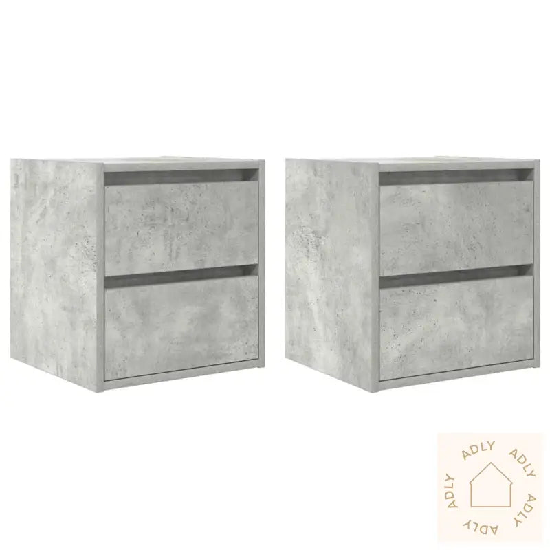 Skruer og plugger for veggmontering følger ikke med. For best mulig resultat anbefaler vi å velge festemidler som passer til akkurat din veggtype. Er du usikker, er det lurt å spørre en fagperson eller følge instruksjonene nøye.Farge: betonggråMateriale: konstruert treMål: 38 x 34 x 40 cm (B x D x H)Skuffedimensjoner (hver): 34 x 28,5 x 16 cm (B x D x H)Montering kreves: jaLeveransen inneholder:2 x nattbord