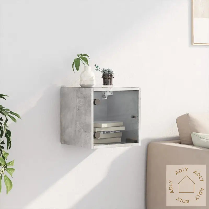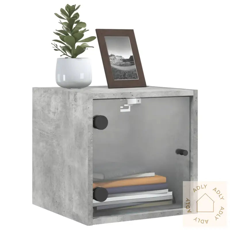 Skruer og plugger for veggmontering følger ikke med. For din sikkerhet anbefaler vi at du velger skruer og plugger som passer akkurat til dine vegger, spesielt hvis de er laget av betong, mur eller lignende. Er du usikker, kan det lønne seg å rådføre seg med en profesjonell. Følg alltid monteringsanvisningen for å sikre at nattbordet henger trygt.Farge: betonggrå, som passer perfekt inn i moderne interiør og ulike stiler av møbler til hjemmet og bokhyller og stående hyller.Materialer: konstruert tre og glass, for optimal styrke og et eksklusivt preg.Mål: 35 x 37 x 35 cm (B x D x H), en størrelse som gir akkurat passe oppbevaringsplass uten å ta for mye plass i rommet.Maks. lastekapasitet: 60 kg, lastekapasitet per rom: 20 kg – godt egnet for daglig bruk og overraskende mye vekt.Montering kreves: ja, men med enkel og tydelig bruksanvisning.