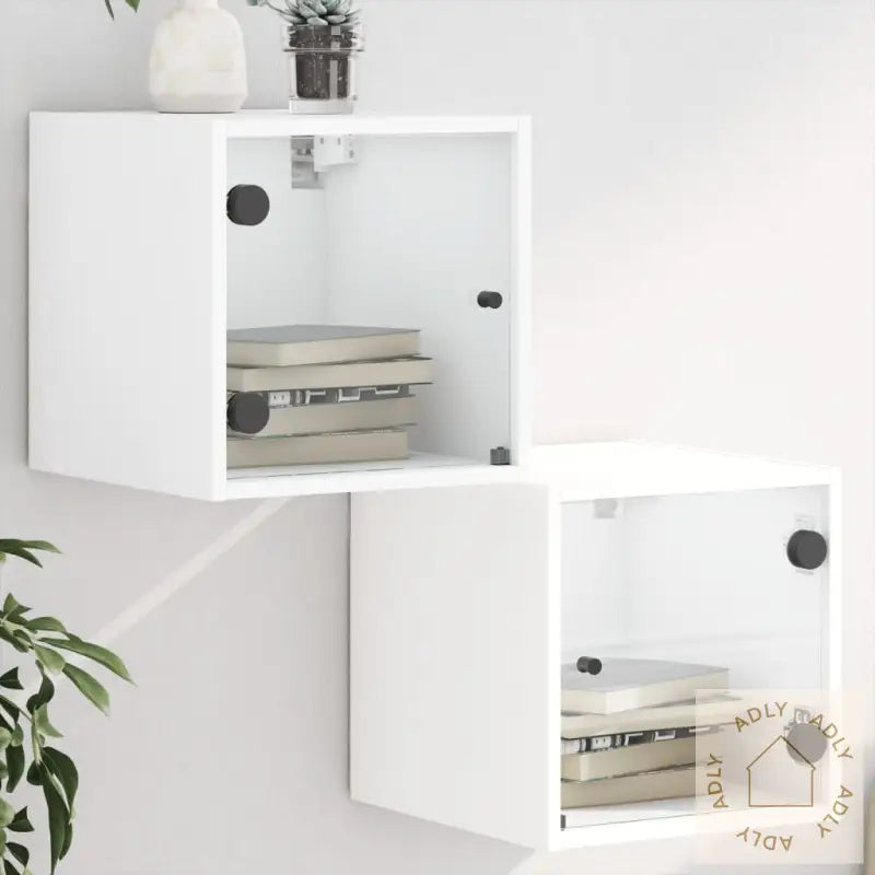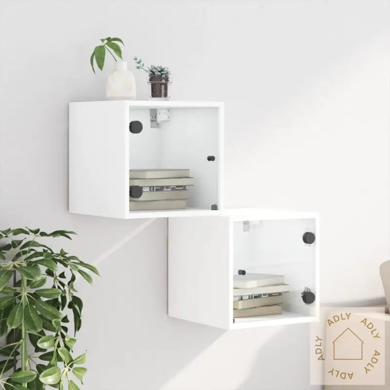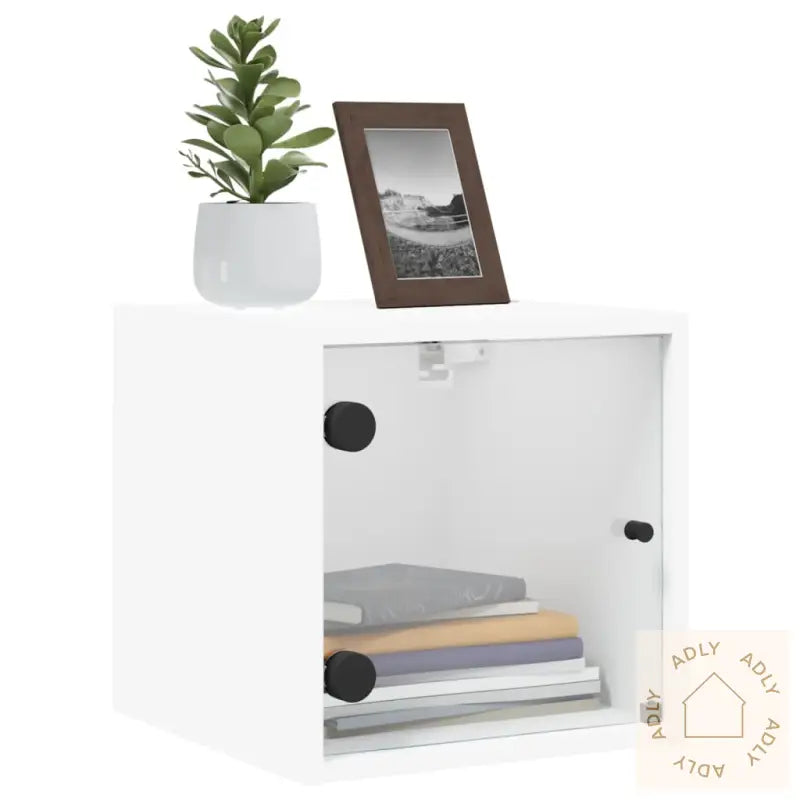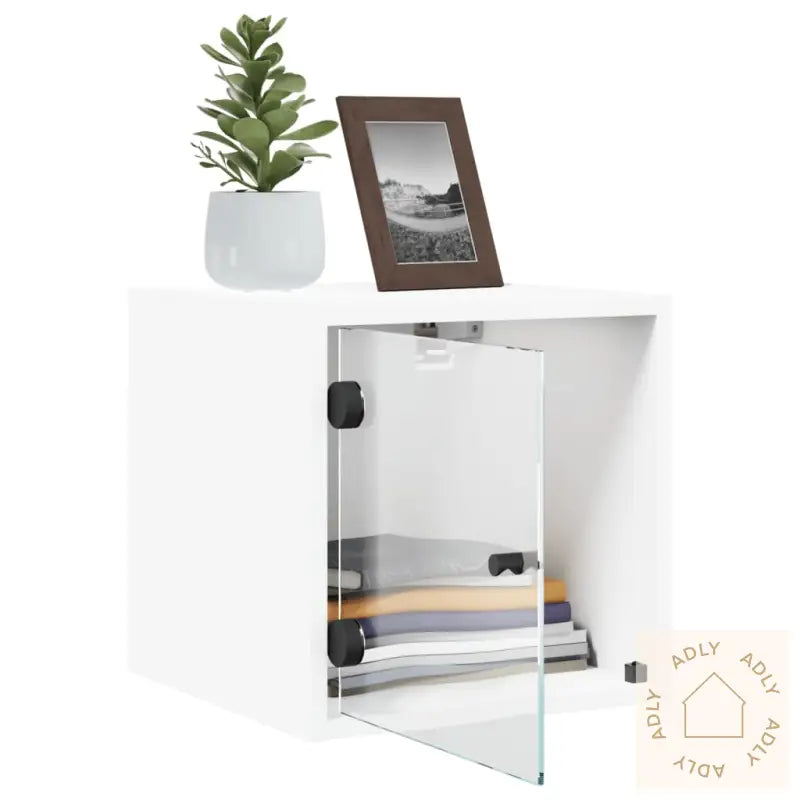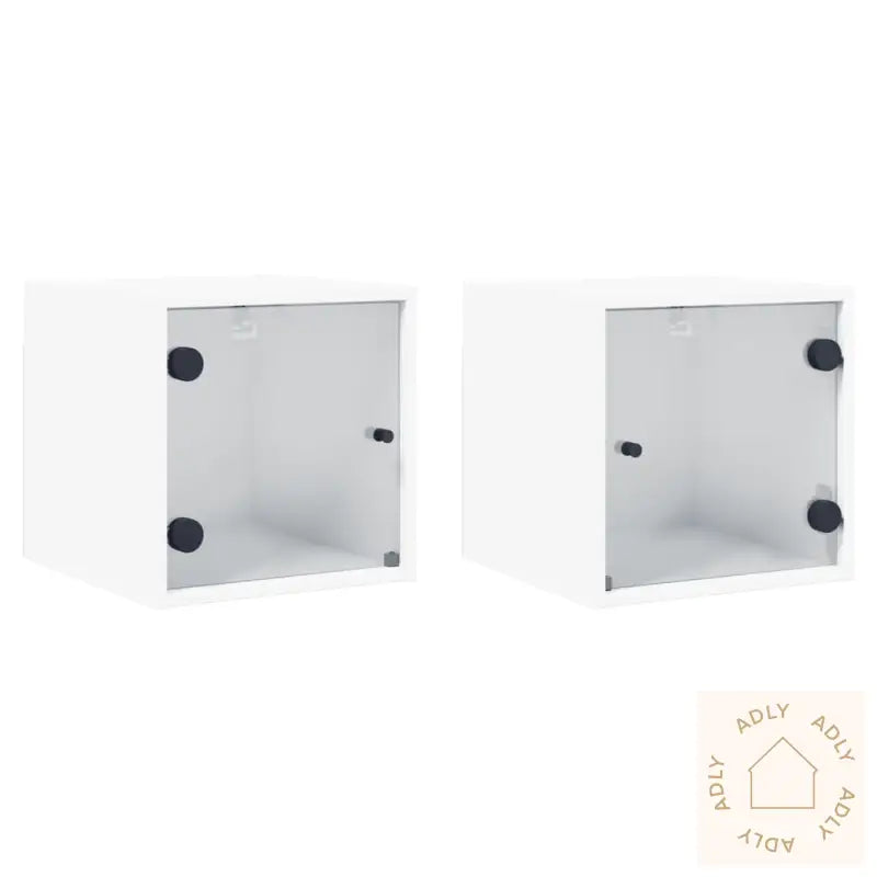 Slitesterkt materiale: Disse nattbordene er laget av konstruert tre av høy kvalitet med en glatt overflate som ikke bare gir et moderne preg, men også sørger for styrke, stabilitet og god motstand mot fuktighet. Dette gjør dem spesielt slitesterke – slik at du får møbler som varer lenge.Rikelig med lagringsplass: Med god oppbevaringsplass kan du enkelt holde orden på nødvendigheter som bøker, magasiner, fjernkontroller og andre småting samt ha dem lett tilgjengelige. Praktisk og funksjonelt for å opprettholde et ryddig og organisert soverom.Stabil topp: Sideskapenes stabile topp gir en trygg plass hvor du kan sette bordlamper, dekorasjoner, vekkerklokker eller det du ønsker å ha for hånden. Den stabile toppen tåler belastning og gir mulighet til å bruke overflaten både som utstillingsplass og som praktisk område.Praktiske glassdører: Skjul småting bak dørene og sørg for at rommet alltid ser ryddig ut. De elegante glassdørene lar deg vise frem fine gjenstander, samtidig som du har god oversikt over innholdet i nattbordet uten å måtte åpne dørene. Praktisk og dekorativt på samme tid!Veggmontert design: Disse sidebordene monteres direkte på veggen, slik at du frigjør gulvplass og gir soverommet et luftig og moderne uttrykk. Veggmonteringen gir deg også frihet til å tilpasse høyden etter behov – smart både for små og store rom!Godt å vite: