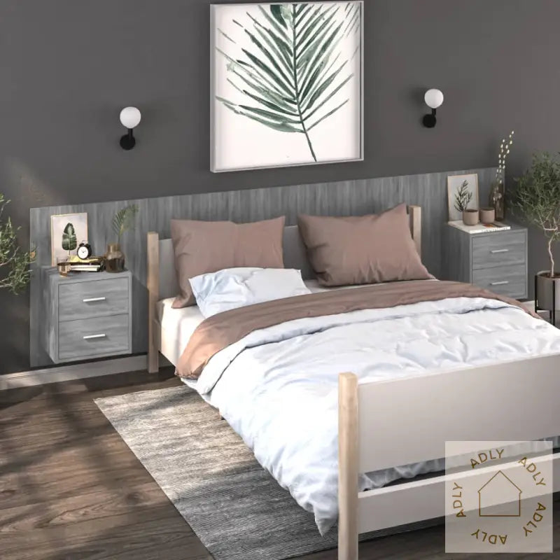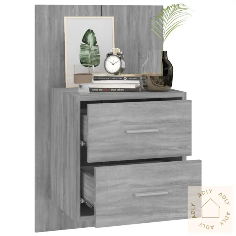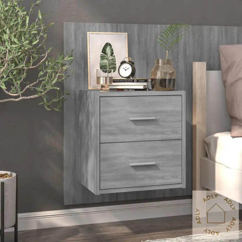 Veggmontert design: Enheten henges direkte på veggen, slik at du får ekstra lagringsplass uten at det tar opp plass på gulvet. Perfekt hvis du vil ha et minimalistisk uttrykk eller bare trenger mer rom i små boliger. Dette møbelet gjør det enkelt å holde hjemmet ditt ryddig og stilfullt.Flerfunksjonelt skap: Det flytende nattbordet er godt egnet til å oppbevare bøker, pyntegjenstander, smarttelefonen, vekkerklokken eller andre småting du vil ha lett tilgjengelig. På den måten utnytter du veggplassen og får et unikt element som enkelt kan kombineres med andre møbler til hjemmet eller hagemøbler.Lettstelt materiale: Laget av konstruert tre i høy kvalitet, noe som gjør overflaten både solid og enkel å holde ren. Materialet er ikke bare slitesterkt, men også motstandsdyktig mot fukt, så du slipper å bekymre deg for søl eller smuss som kan oppstå i hverdagen. Det gir ekstra lang levetid til møbelet ditt.ADVARSEL: