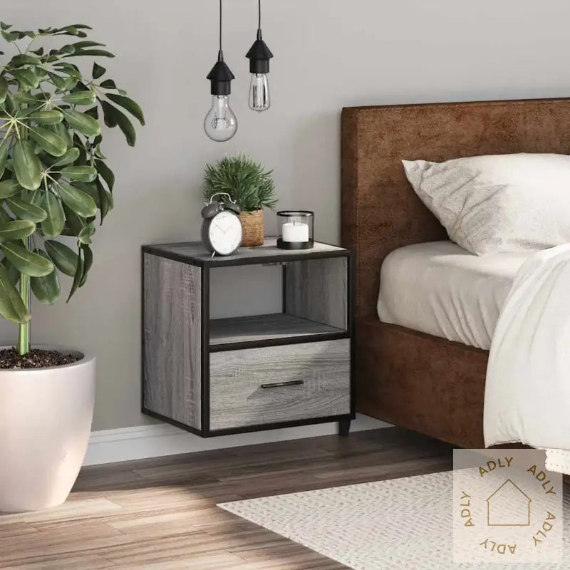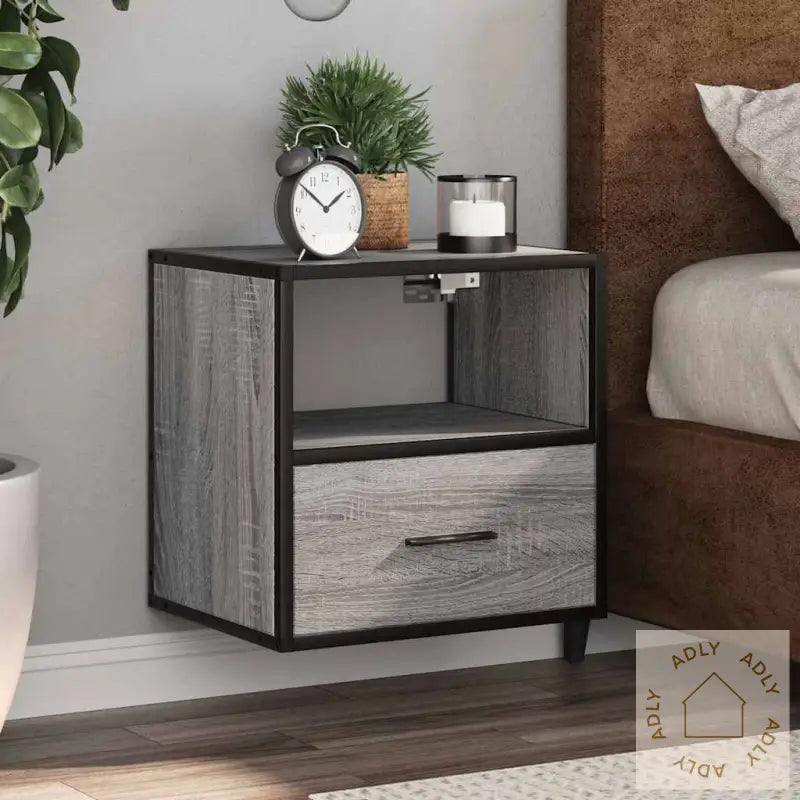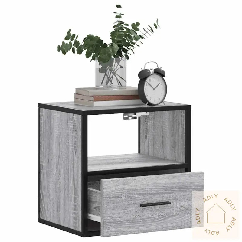 Stabilt og slitesterkt materiale: Nattbordet er laget av konstruert tre, et robust og stabilt materiale med en jevn overflate som tåler daglig bruk. Det er motstandsdyktig mot fuktighet, vridning og sprekker, så du får et produkt som holder seg pent lenge. Perfekt for deg som vil ha langvarige møbler til hjemmet.Solid og holdbar ramme: Den sterke rammen i metall gir ekstra stabilitet og forlenger levetiden på nattbordet – en trygg investering, enten det skal brukes på soverommet, i stua ved siden av bokhyller og stående hyller, eller andre steder i boligen.Rikelig med lagringsplass: Nattbordets smarte utforming gir god plass til bøker, blader, briller og annet nødvendig, så alt du trenger til natten er lett tilgjengelig. Holder området rundt sengen organisert og ryddig.Veggmontert design: Med sitt flytende, veggmonterte oppheng utnytter du veggplassen best mulig. Det gjør rengjøring enkelt og gir deg mer frie gulvflater – ideelt hvis du ønsker et minimalistisk og åpent uttrykk blant dine møbler til hjemmet.Solid topp: Den faste overflaten gir god plass til bordlamper, vekkerklokker, bilder eller små potteplanter. Her har du rom for både dekorasjoner og annet nødvendig du vil ha for hånden.Godt å vite: