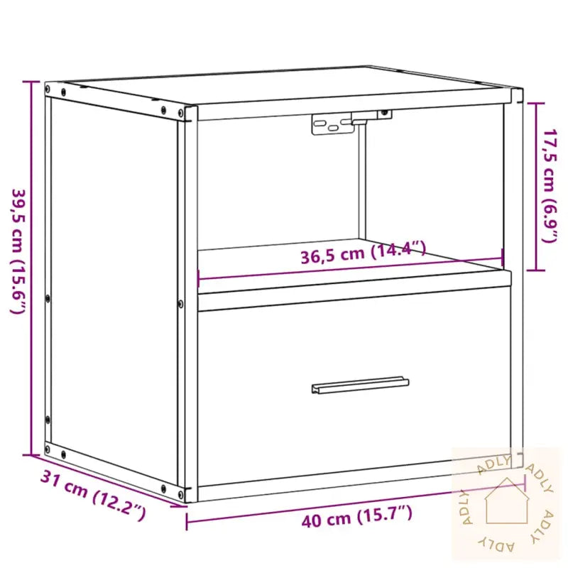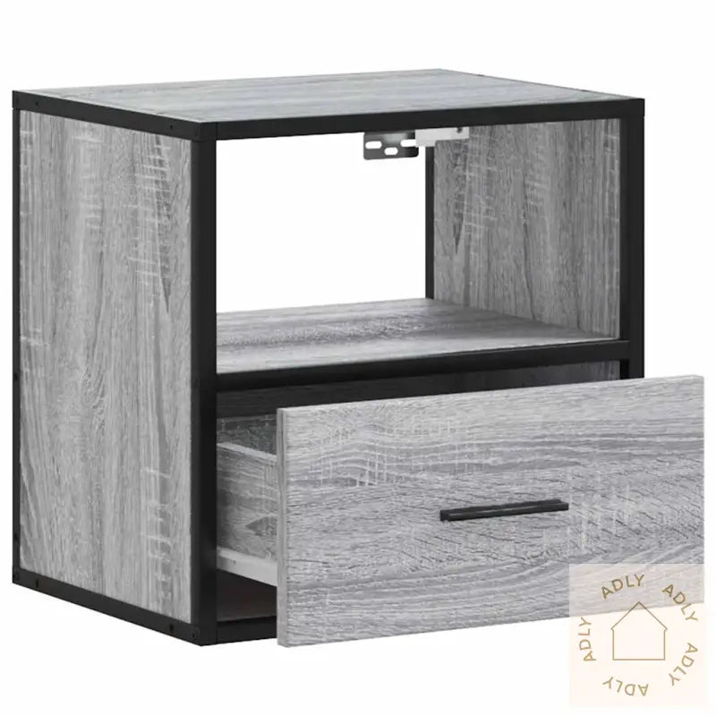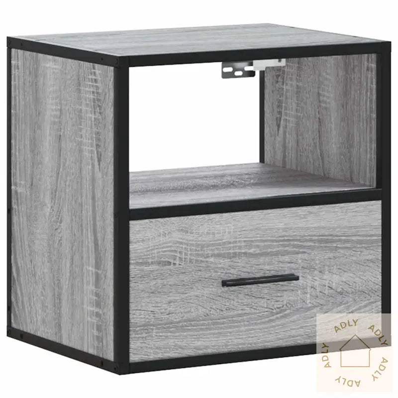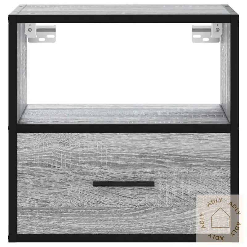 Skruer og plugger for veggmontering følger ikke med. Velg festemidler som passer din veggtype. Om du er usikker, spør gjerne en fagperson til råds, og følg alltid monteringsveiledningen nøye.Farge: grå sonomaMaterialer: konstruert tre, metallMål: 40 x 31 x 39,5 cm (B x D x H)Total lastekapasitet: 50 kgVektkapasitet per skuff: 5 kgMed 1 skuff og 1 åpen hylleMontering kreves