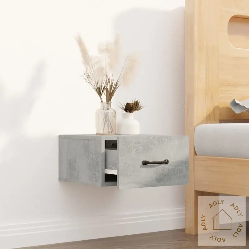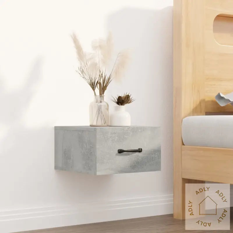Det konstruerte treverket har høy kvalitet og en glatt overflate, noe som gir nattbordet lang levetid. Materialet er sterkt, stabilt og motstandsdyktig mot fuktighet – perfekt i rom hvor du ønsker holdbare møbler.Med sitt veggmonterte design sparer du gulvplass, og får enkelt tilgang til det du trenger. Dette gjør nattbordet til et godt valg der plassen er begrenset, enten det er på soverommet eller i andre rom der smarte møbelløsninger trengs.Bordet har god lagringsplass, slik at du kan oppbevare bøker, magasiner, fjernkontroller eller andre småting pent samlet, alltid innen rekkevidde når du skal slappe av eller lese.Denne praktiske løsningen gir deg større frihet til å innrede etter egne behov, og hjelper deg å skape et rent og moderne uttrykk. Nyt følelsen av et ordentlig og gjennomført hjem med møbler som kombinerer design og funksjon!