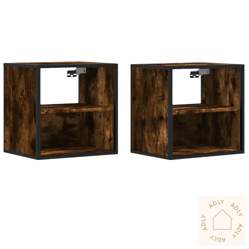 Stabilt og slitesterkt materiale: Konstruert tre er kjent for sin robusthet og stabilitet, og den jevne overflaten gir et moderne og elegant preg på møbler til hjemmet. Dette materialet motstår fuktighet, vrir seg ikke og sprekker ikke lett, så du får et nattbord som holder seg pent lenge, uansett om det står under vinduet eller nær radiatoren.Stabil og langvarig ramme: Kombinasjonen av tre og metall gir god styrke og gjør nattbordene solide og stabile. Metallrammen tåler daglig bruk og gir ekstra støtte, ideelt både for tunge gjenstander og om du trenger et ekstra trygt sted for bøker, hagemøbler eller annet nødvendig.Rikelig med lagringsplass: Med to hyller får du mye plass til å oppbevare magasiner, bøker, briller, små elektroniske dingser og annet nødvendig. Ha det viktigste samlet og tilgjengelig ved siden av sengen, uten rot på toppen eller rundt på gulvet.Veggmontert design: Oppheng på veggen gjør at du slipper ben som tar opp gulvplass, og du kan plassere nattbordene i akkurat den høyden som passer deg. Det gir også et moderne, flytende utseende i stil med populære bokhyller og stående hyller – og passer perfekt sammen med annen smart innredning i hjemmet.Solid topp: Toppen er stor nok til en bordlampe, vekkerklokke, telefon, bilderammer eller andre dekorasjoner – alt annet nødvendig for en koselig og personlig stemning på soverommet.Godt å vite: