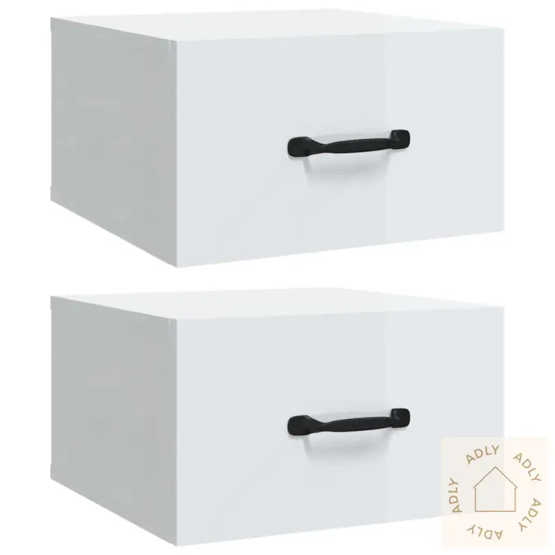 Skrue(r) og plugg(er) for festing til vegg følger ikke med. Bruk festemidler som passer til din veggtype. Om du er usikker, anbefales det å få råd fra en fagperson. Les instruksjonene nøye for et trygt og pent resultat.Monteringsveiledning ligger ved i pakken for å gjøre monteringen enkel og grei.Farge: høyglans hvitMateriale: konstruert treMål: 35 x 35 x 20 cm (B x D x H)Leveransen inneholder:2 x vegghengte nattbord