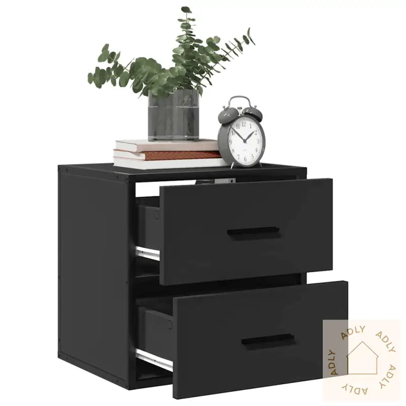 Skruer og plugger for veggmontering følger ikke med. Velg egnede festemidler for din veggtype – spør gjerne en fagperson hvis du er usikker. Husk å lese og følge monteringsanvisningen nøye.Farge: svartMaterialer: konstruert tre, metallSamlet mål: 40 x 31 x 39,5 cm (B x D x H)Total lastekapasitet: 50 kgVektkapasitet per skuff: 5 kgMed 2 skufferMontering kreves: ja