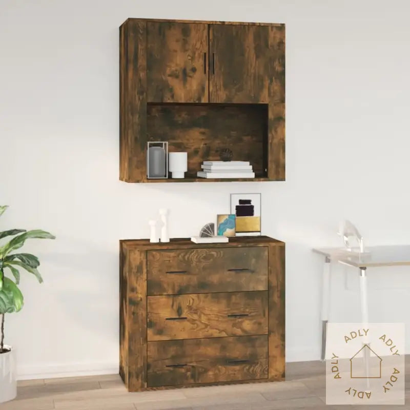 Praktisk materiale: Skapet er laget av konstruert tre, som skiller seg ut med sin solide kvalitet og glatte overflate. Det tåler fuktighet godt og krever minimalt med vedlikehold, noe som gjør det ekstra enkelt å holde rent. Materialet gir god holdbarhet og lang levetid, så du kan stole på dette møblet til hjemmet i mange år.Rikelig med oppbevaring: Skapet byr på generøs oppbevaringsplass der du lett kan holde orden på alt fra bøker og dekor til småsaker. Perfekt hvis du vil organisere rommet uten at gulvarealet blir fullt – en smart løsning for ethvert hjem hvor ekstra lagringsplass trengs.Veggmontert design: Takket være den vegghengte løsningen, sparer du verdifull gulvplass og får et ryddigere og mer oversiktlig rom. Den fleksible monteringen gir deg muligheten til å integrere skapet sammen med andre bokhyller og stående hyller, eller kombinere det med hagemøbler og annen innredning akkurat slik du ønsker.Allsidig oppbevaringsløsning: Du kan også plassere veggskapet oppå en skjenk for å lage et highboard; på den måten får du enda mer lagringsplass og maksimal utnyttelse av oppbevaringen hjemme. Denne fleksibiliteten gjør det lett å tilpasse skapet etter behov og smak.Merk: