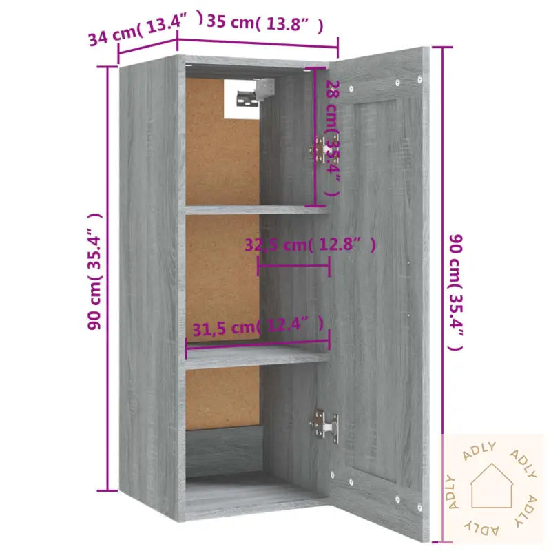Alle veggskap kommer med enkel og tydelig monteringsveiledning i pakken for rask og grei montering.Skrue(r) og plugg(er) til bakveggen følger ikke med. Velg skrue(r) og plugg(er) som passer din veggtype – spør gjerne fagfolk hvis du er usikker. Følg alltid instruksjonene nøye.Farge: grå eikMateriale: konstruert treMål: 35 x 34 x 90 cm (B x D x H)Maksimal lastekapasitet (totalt): 60 kgVelg dette elegante veggskapet hvis du ser etter moderne møbler til hjemmet som gir både praktisk lagringsplass og et flott tilskudd til innredningen. Kombiner gjerne med andre møbler eller utendørsmøbler for en helhetlig stil både inne og ute.