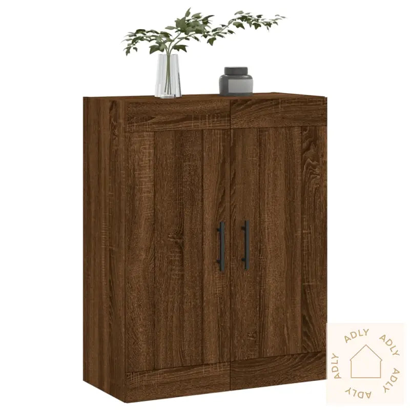 Det solide konstruerte treverket sikrer at dette oppbevaringsskapet holder seg pent lenge. Overflaten er glatt, og materialet er både sterkt, stabilt og motstandsdyktig mot fuktighet – perfekt for daglig bruk.Skapet har tre rom med to dører, så du får god plass til å organisere og skjule alt fra bøker og dokumenter, til klær og småting du bruker ofte. Holder det ryddig og oversiktlig!Siden skapet er veggmontert, frigjør du gulvplass og får en luftig følelse i rommet. Skapet monteres enkelt på veggen der det passer best for deg.De svarte jernhåndtakene gir ikke bare et stilig uttrykk, men er også laget for å vare lenge. De gjør skapet ekstra attraktivt og fremhever den moderne stilen sammen med finishen i brun eik.Dette skapet passer til mange typer møbler og rom, og kan også plasseres oppå en skjenk for å lage ekstra lagringsplass i høyden. Takket være det rene og enkle designet, glir det elegant inn i ulike interiørstiler og gir fleksible oppbevaringsmuligheter.Godt å vite: