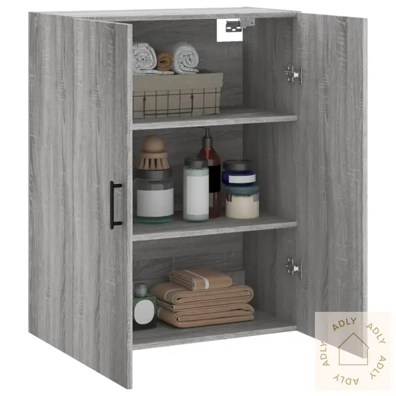 Skruer og plugger for veggmontering følger ikke med. Velg festemateriale som passer til veggtypen i ditt hjem, og spør gjerne fagfolk om råd for trygg montering. Les hele monteringsanvisningen nøye før du setter i gang.Farge: Grå SonomaMateriale: Konstruert treMål: 69,5 x 34 x 90 cm (B x D x H)Montering kreves: Ja