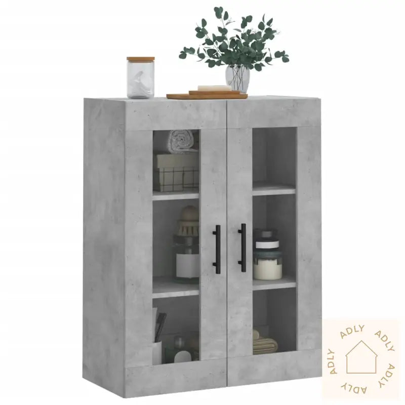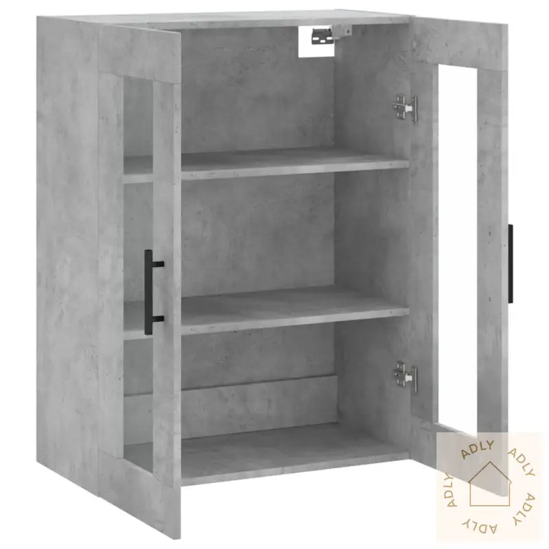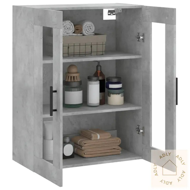 Skruer og plugger til veggmontering er ikke inkludert, så sørg for å bruke passende festemidler til dine vegger. Er du usikker på monteringen, anbefaler vi å rådføre deg med en profesjonell for best mulig resultat. Husk å lese og følge instruksjonene nøye.Farge: BetonggråMaterialer: Konstruert tre og glassMål: 69,5 x 34 x 90 cm (B x D x H)Montering kreves: Ja