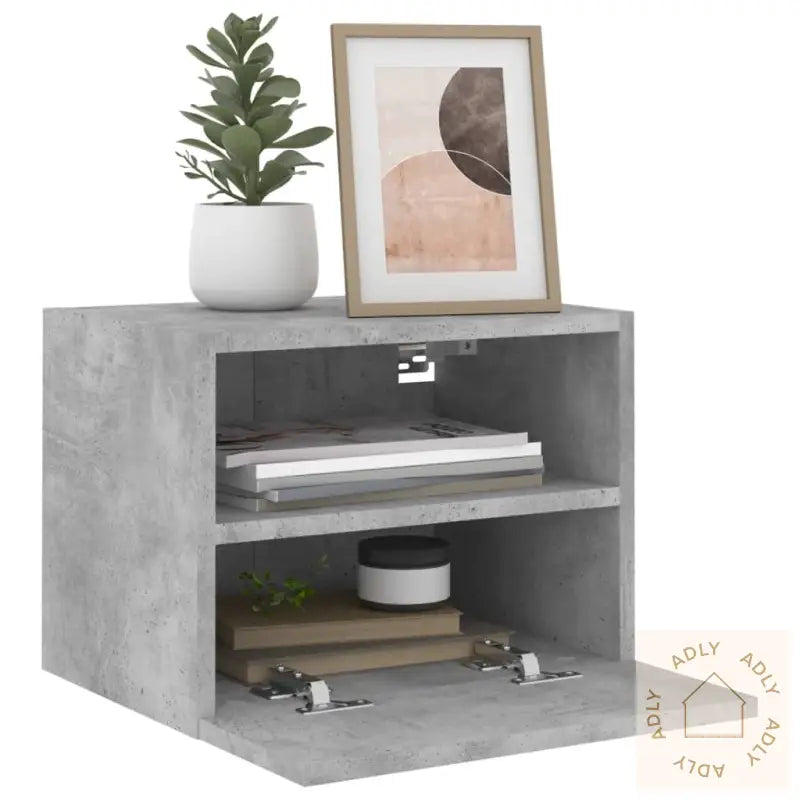 Skruer og plugger for montering på vegg følger ikke med. Vi anbefaler at du velger festemidler som passer til akkurat dine vegger, og spør en fagperson om du er usikker. Følg monteringsanvisningen nøye for best resultat.Farge: betonggråMateriale: konstruert treMål: 40 x 30 x 30 cm (B x D x H)Mål rom: 37 x 28,5 x 13 cm (B x D x H)Montering kreves: ja