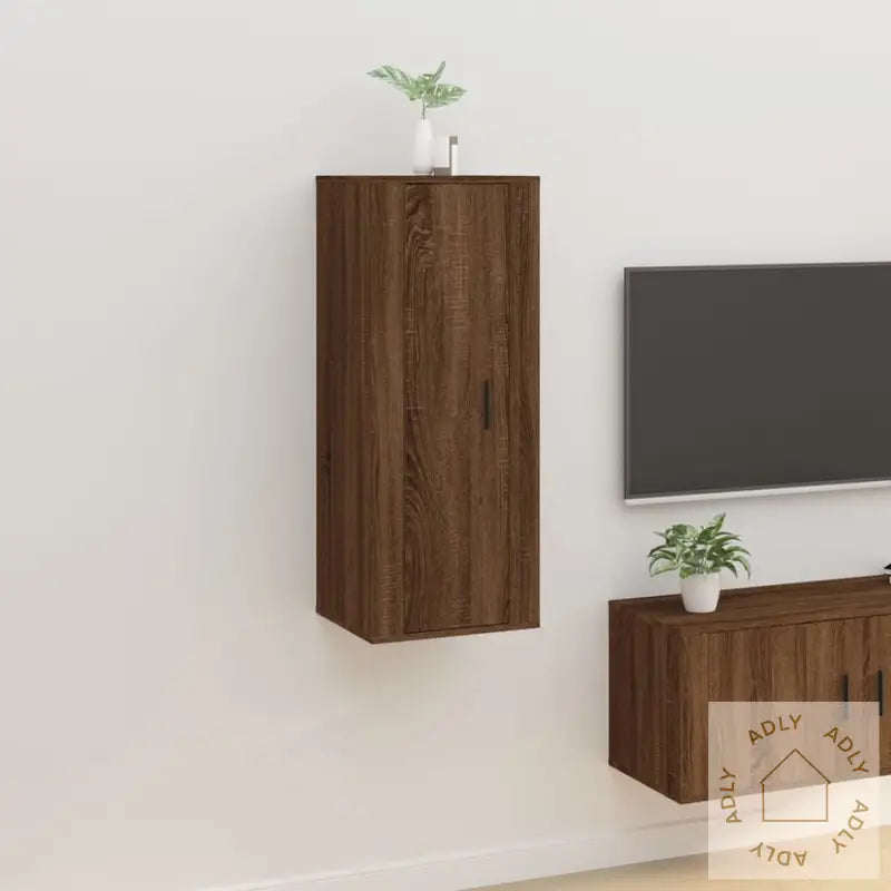 Praktisk materiale: Det solide konstruerte treverket er kjent for sin høye kvalitet og har en jevn overflate som bidrar til et eksklusivt preg. Materialet gir møbelet styrke, stabilitet og motstand mot fukt, noe som sikrer holdbarhet over tid — perfekt i hjem med varierende luftfuktighet.Rikelig med lagringsplass: Med tre rom får du god plass til å organisere alt fra mediespillere og fjernkontroller til blader, bokhyller og stående hyller eller andre småting som lett flyter rundt i stua. Det gir et ryddigere og mer harmonisk hjem.Veggmontert funksjon: Ved å henge TV-benken på veggen frigjør du gulvplass og gir rommet et luftigere uttrykk. Dette er spesielt gunstig i mindre rom, og det gir deg fleksibilitet til å tilpasse resten av møblene etter dine behov.Multifunksjonelt skap: Toppen av medieskapet har god plass til dekorative detaljer som fotorammer, grønne planter eller personlige favoritter. Du kan også bruke den som nattbord eller kombinere med andre møbler til hjemmet for et helhetlig interiør.To monteringsmuligheter: Dørene på mediaenheten kan enkelt monteres enten til høyre eller venstre, alt etter hvordan rommet ditt er innredet. Dette gjør at tv-benken passer sammen med ulike typer hagemøbler og annen innredning i brun eik.Merk: