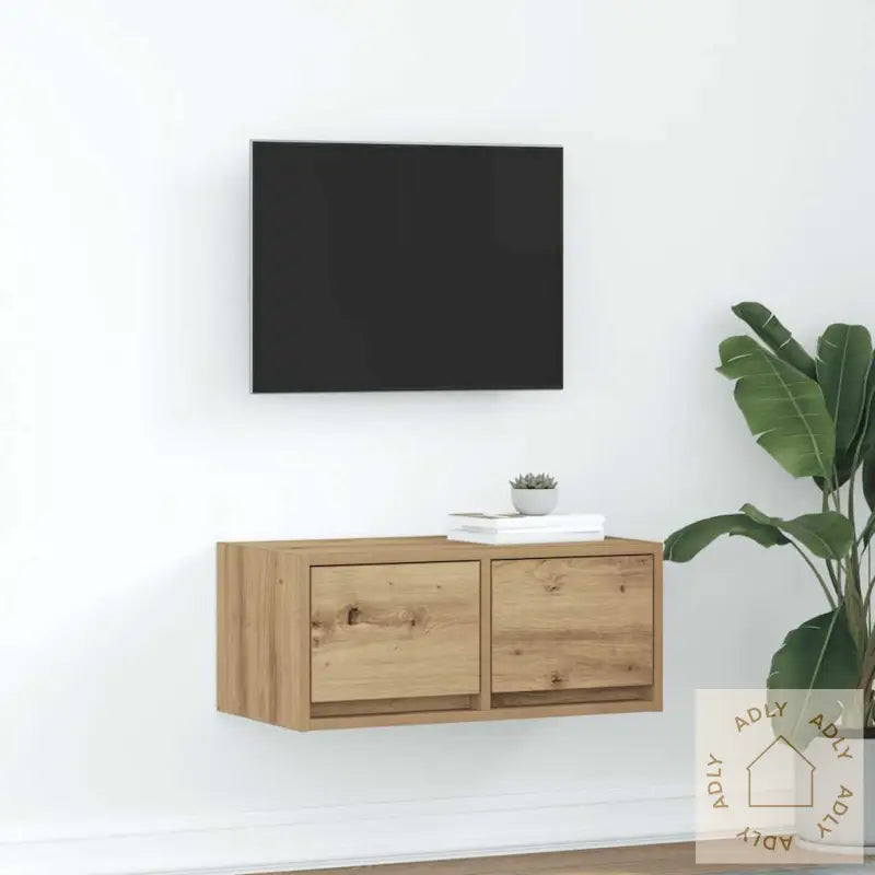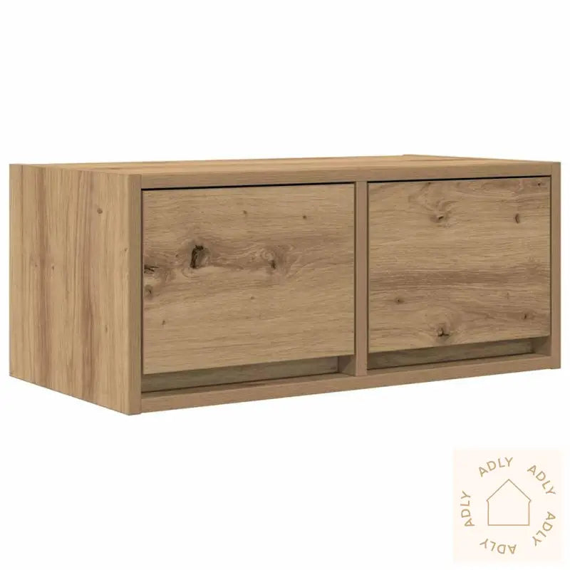 Stabilt og slitesterkt materiale: TV-benken er laget av konstruert tre – et robust og stabilt materiale med jevn overflate. Dette gjør benken svært motstandsdyktig mot fukt, vridning og sprekker, så du får et møbel som holder seg pent lenge og tåler hverdagsbruk.Rikelig med oppbevaringsplass: Den har flere romslige oppbevaringsmuligheter, slik at magasiner, bøker, DVDer og alt av multimedieenheter kan ligge lett tilgjengelig og organisert.Solid og stabil bordplate: Topplaten er solid og gir god plass til å plassere TV, stereoanlegg eller dekorative elementer som vaser eller potteplanter. Alt du vil vise frem får sin plass.Plassbesparende design: Den veggmonterte løsningen frigjør gulvplass og gir deg mer rom til andre møbler eller hagemøbler. Perfekt for mindre hjem eller hvis du bare vil ha et åpent og luftig uttrykk.Enkel å vedlikeholde: Med glatt overflate er dette et skap du enkelt tørker av med en fuktig klut. Overflaten krever minimalt vedlikehold, noe som gjør livet litt enklere i en travel hverdag.Farge: Artisan eikMateriale: Konstruert treSamlet mål: 60 x 31 x 25,5 cm (B x D x H)Skuffedimensjoner (hver): 27 x 23,5 x 19,5 cm (B x D x H)Totalt maks. vektkapasitet: 60 kgMaks. vektkapasitet per skuff: 5 kgMed 2 skufferMontering kreves: ja