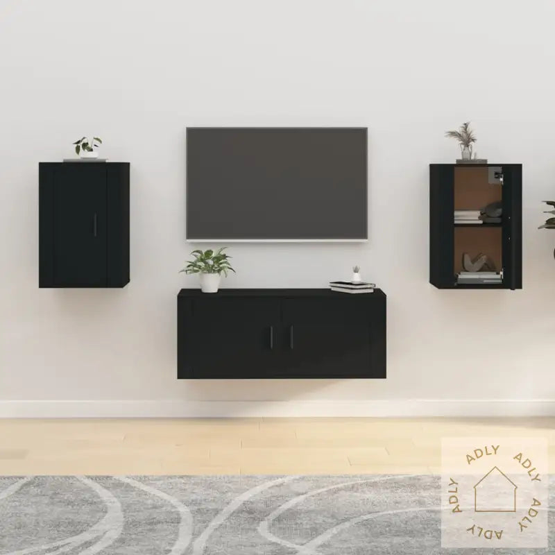 Skrue(r) og plugg(er) til innfeste i vegg følger ikke med. Finn og bruk riktig tilbehør for din veggtype, og spør gjerne fagfolk hvis du er usikker. Det er viktig å følge instruksjonene nøye for trygg montering.Alle produktene leveres med en tydelig monteringsveiledning i esken, slik at du raskt kan ta det i bruk og få TV-benken opp på veggen.Farge: SvartMateriale: Konstruert treMål (hver): 40 x 34,5 x 60 cm (B x D x H)Maksimal lastekapasitet (totalt): 60 kgLeveransen inneholder:2 x vegghengte TV-benker