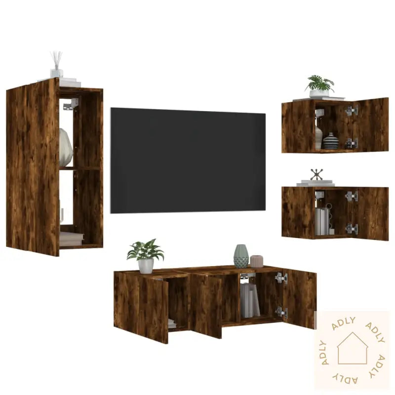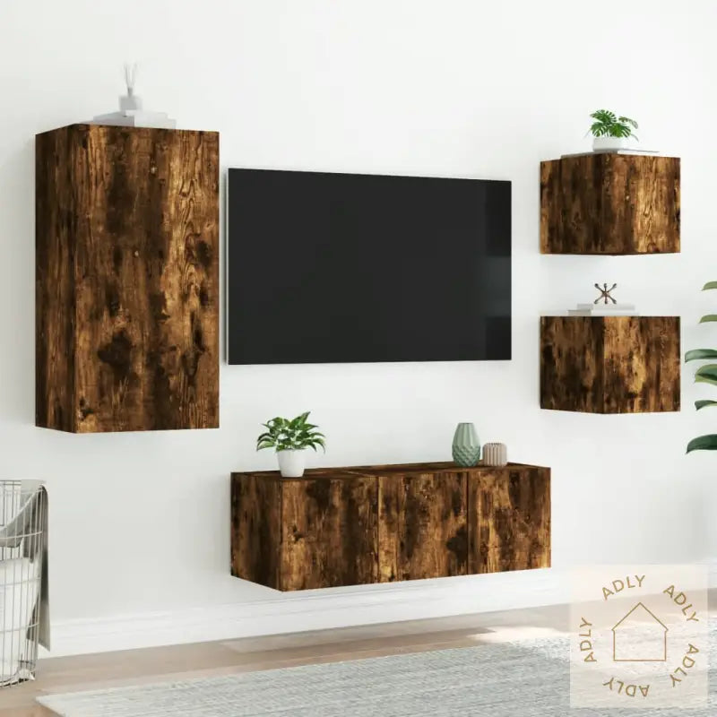 Skruer og plugger til veggmontering følger ikke med. Husk å velge riktige fester til din veggtype – om du er usikker, anbefales det å kontakte en fagperson. Følg alltid instruksjonene nøye.Produktet leveres med USB-kontakt og trenger en sertifisert USB-strømkilde på 5V (ikke inkludert).Farge: røkt eik, som gir et moderne og varmt uttrykk.Materiale: konstruert tre, både robust og lett å vedlikeholde.Montering kreves: jaLeveransen inkluderer:3 x vegghengte TV-benker (30,5 x 35 x 30 cm)1 x vegghengt TV-benk (40,5 x 35 x 80 cm)1 x vegghengt TV-benk (60 x 35 x 31 cm)