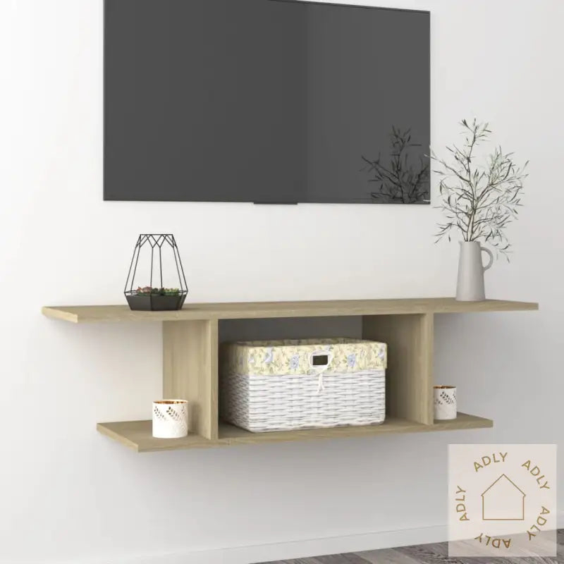 Denne veggmonterte TV-benken i sonoma eik blir garantert et blikkfang i stua, med sitt moderne og stilrene design som også er svært praktisk. Her får du en smart løsning for å spare plass og samtidig gi hjemmet et tidsriktig uttrykk. Benken monteres rett på veggen slik at gulvet holdes fritt, noe som gir rommet et luftig og ryddig preg, samt gjør rengjøringen enklere. Dette gjør den til et perfekt valg når du ser etter funksjonelle møbler til hjemmet.