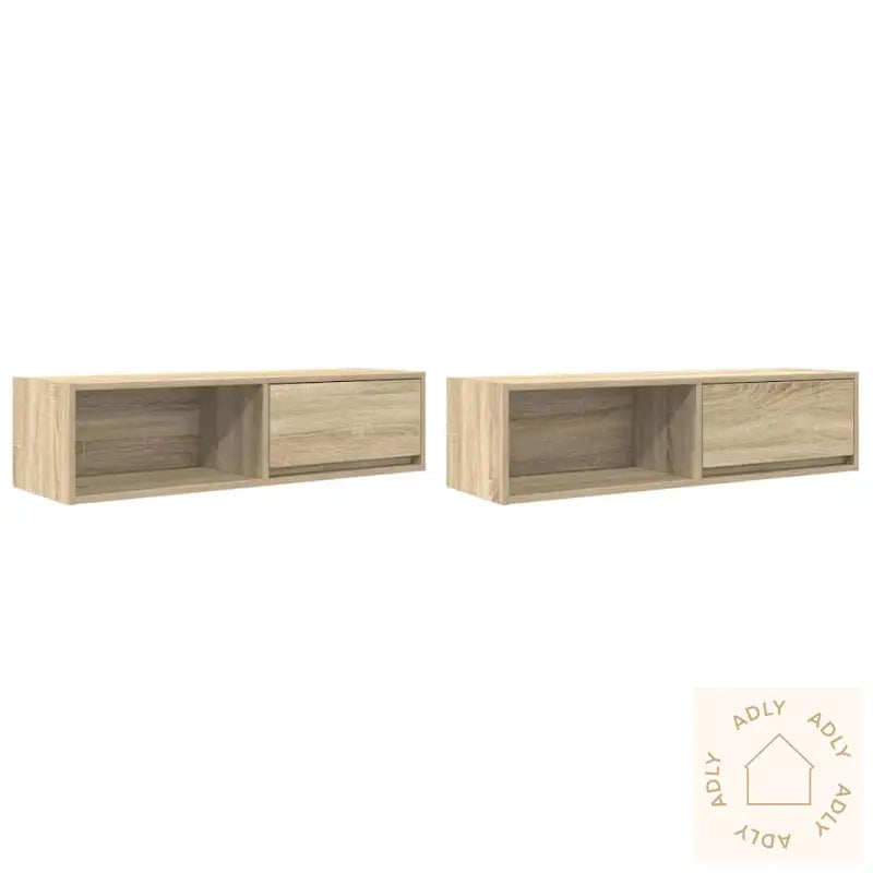 Stabilt og slitesterkt materiale: Konstruert tre gir deg en robust og stabil overflate som tåler daglig bruk. Det har en jevn finish, er motstandsdyktig mot både fukt og vridning, og holder seg pent lenge – ideelt når du vil ha holdbare møbler til hjemmet.Rikelig med oppbevaringsplass: Her får du masse plass til alt fra magasiner og bøker til DVDer og andre multimedieenheter. Alt du liker å ha lett tilgjengelig i stua kan du enkelt organisere her, noe som gir ro og orden i rommet.Stabil og solid bordplate: Overflaten er skapt for å bære både TV-en din, stereoanlegg eller personlige dekorasjoner slik som vaser, potteplanter eller bilder.Plassbesparende design: Ved å montere TV-benkene på veggen frigjør du verdifull gulvplass og får en mer åpen følelse i rommet. Dette gjør også rengjøring mye enklere, samtidig som det gir et moderne uttrykk.Enkel å vedlikeholde: Den glatte overflaten på hifi-skapet gjør det fort gjort å fjerne støv og småflekker med bare en fuktig klut, så møbelet holder seg pent uten mye jobb.Farge: Sonoma eik, som gir et varmt og naturlig preg og passer flott sammen med mange ulike stilarter av hagemøbler, bokhyller og stående hyller.Materiale: Konstruert treSamlet mål (hver): 100 x 31 x 25,5 cm (B x D x H)Skuffedimensjoner: 47 x 23,5 x 19,5 cm (B x D x H)Totalt maks. vektkapasitet: 60 kgMaks. vektkapasitet per hylle: 20 kgMaks. vektkapasitet per skuff: 5 kgMed 1 skuff og 1 hylle per benk – praktisk til både oppbevaring og utstilling av ting du er glad i.Montering kreves: ja, men det er enkelt å sette sammen, så du får raskt glede av dine nye møbler til hjemmet.Leveransen inneholder:2 x TV-benker