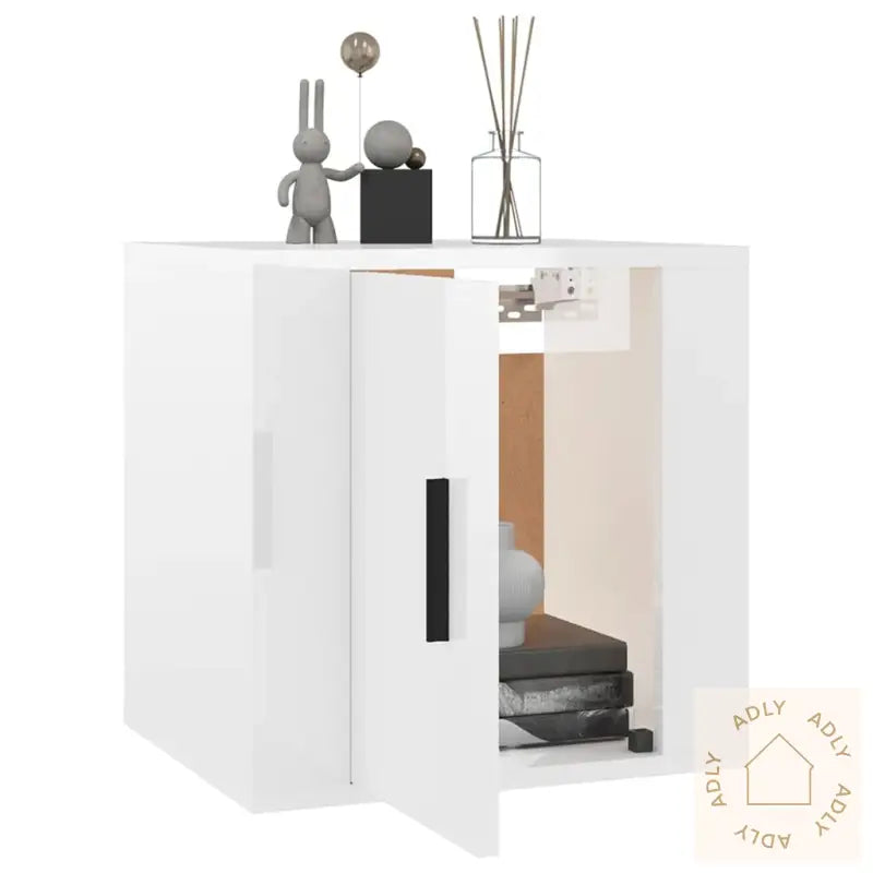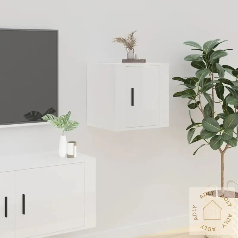 Skruer og plugger for innfesting i vegg følger ikke med. Velg skruer og plugger som passer til ditt underlag, og rådfør deg med fagfolk hvis du er usikker. Husk å følge instruksjonene nøye for trygg montering.Hver TV-benk leveres med en enkel monteringsveiledning i esken, så du fikser montering uten stress.Farge: Høyglans hvitMateriale: Konstruert treMål: 40 x 34,5 x 40 cm (B x D x H)Maksimal lastekapasitet (totalt): 60 kg