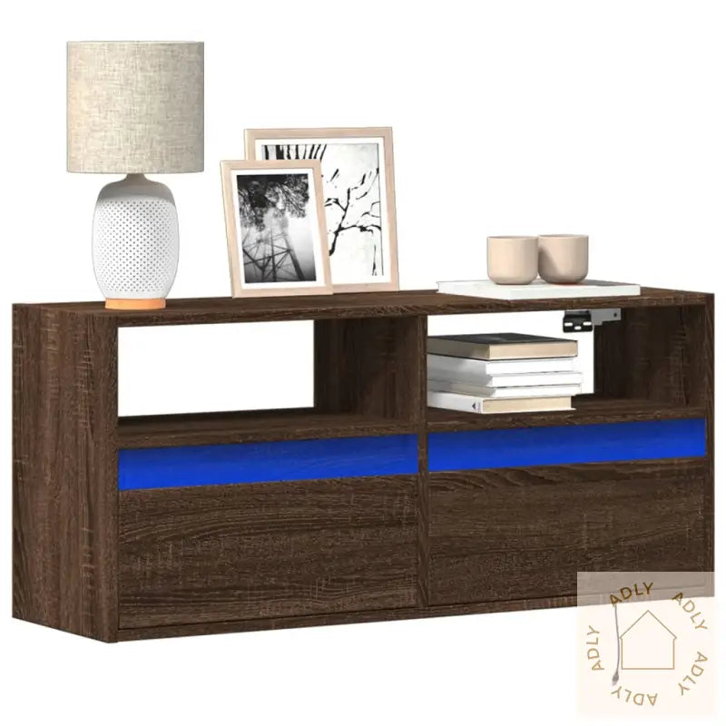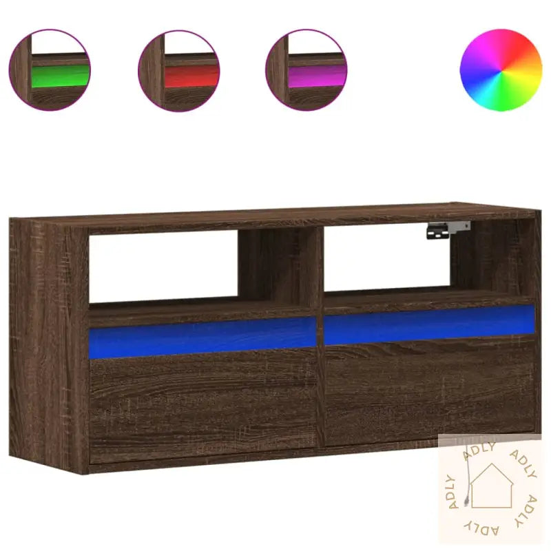 Stabilt og slitesterkt materiale: Benken er laget av konstruert tre, som er kjent for sin styrke og holdbarhet. Den glatte overflaten tåler fuktighet, motstår vridning og sprekker ikke lett, så dette møbelet tåler daglig bruk og passer perfekt sammen med andre møbler til hjemmet som bokhyller og stående hyller.Ambience med RGB LED-lys: TV-benken leveres med LED-lys som du selv kan styre. Velg blant ulike farger, moduser og lysstyrker for å skape akkurat den stemningen du ønsker – perfekt når du har filmkveld eller venner på besøk.God oppbevaringsplass: Med to skuffer og to åpne rom får du rikelig med plass til å organisere bøker, magasiner, DVD-er og småting, slik at alt er pent samlet, men likevel lett tilgjengelig.Plassbesparende design: Det vegghengte formatet gjør det enkelt å utnytte ellers ubrukt plass på veggen – praktisk for mindre rom der hver kvadratmeter teller. Du får ekstra gulvplass til annen innredning som hagemøbler, eller rett og slett mer luft rundt deg.Fleksibelt, DIY-vennlig design: Denne "flytende" TV-benken gir deg mange muligheter, enten du vil bruke den alene eller bygge ut et komplett underholdningssenter med flere veggmonterte møbler. Tilpass oppsettet slik det passer dine behov best!Godt å vite: