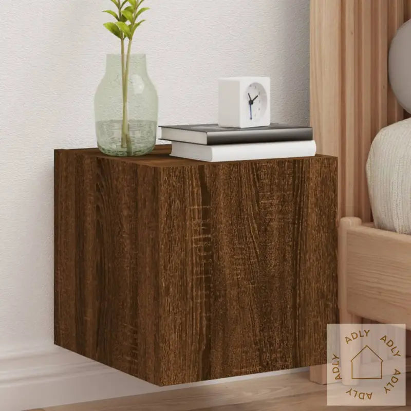 Denne veggmonterte TV-benken i brun eik er en smart løsning for deg som ønsker å maksimere plassen og holde gulvet fritt og ryddig. Designet gjør den perfekt som både stilig TV-benk eller praktisk vegghengt nattbord, og den passer godt sammen med andre møbler til hjemmet.
