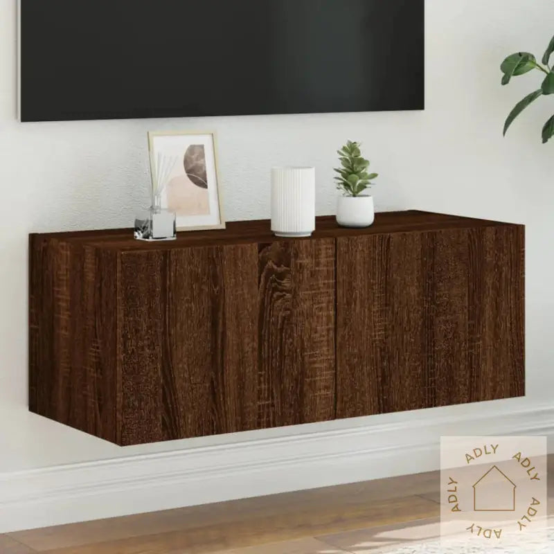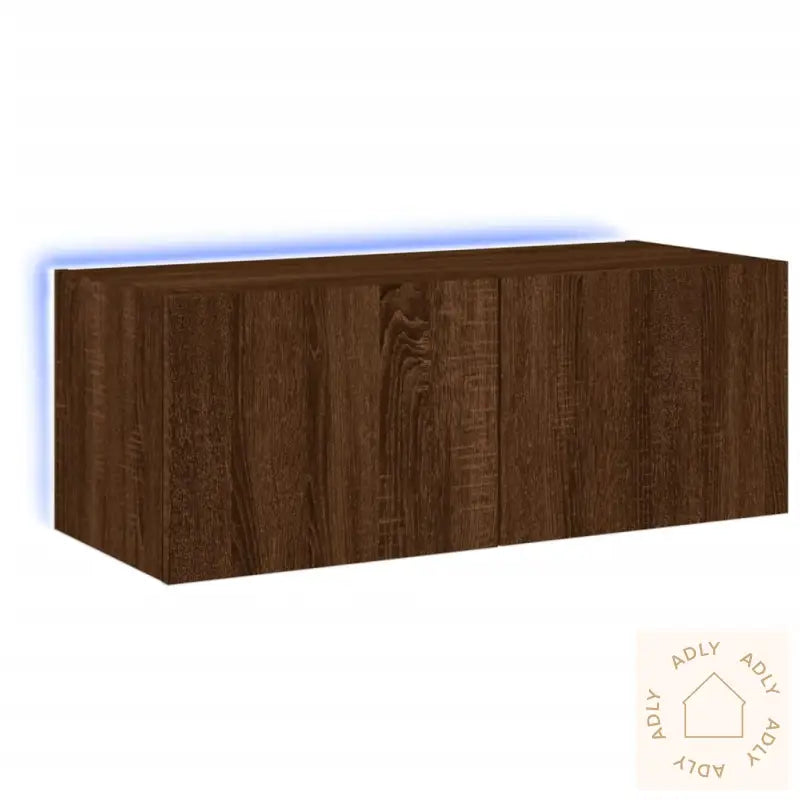 Slitesterkt materiale: Det konstruerte treverket av høy kvalitet har en jevn og pen overflate, samtidig som det gir solid styrke, stabilitet og høy motstand mot fuktighet. Dette gir møblet lang holdbarhet og gjør at det holder seg fint over tid.RGB LED-lys: TV-benken kommer med fargerike RGB LED-lys, noe som gir et ekstra moderne preg. Lysene har flere tilpasningsmuligheter – du kan lett endre fargetone eller la dem skifte automatisk for å matche stemningen. Disse RGB LED-lysene gir ikke bare et stilfullt uttrykk, men løfter den trendy følelsen i rommet ditt.Rikelig lagringsplass: Skapet har to rom bak dørene, der du kan oppbevare alt fra bøker og DVD-er til magasiner og småting. Dette gjør det enkelt å holde stua organisert og gir deg alt tilgjengelig rett ved hånden.Allsidig bruk: Dette vegghengte skapet kan fint brukes enten som en TV-benk eller nattbord på veggen. Kombiner gjerne med andre skap eller hagemøbler i samme stil for å bygge en unik og funksjonell vegg.Veggmontert design: Ved å montere skapet på veggen frigjør du gulvplass og får et minimalistisk hjem med rene linjer – ideelt for mindre rom der det er viktig å bruke arealet effektivt.Godt å vite: