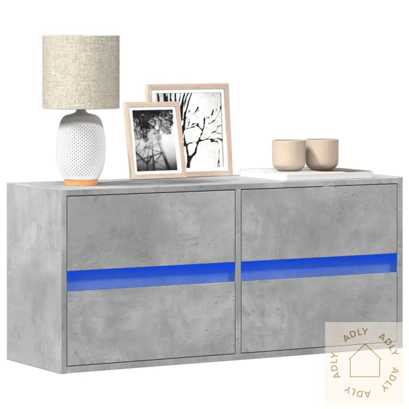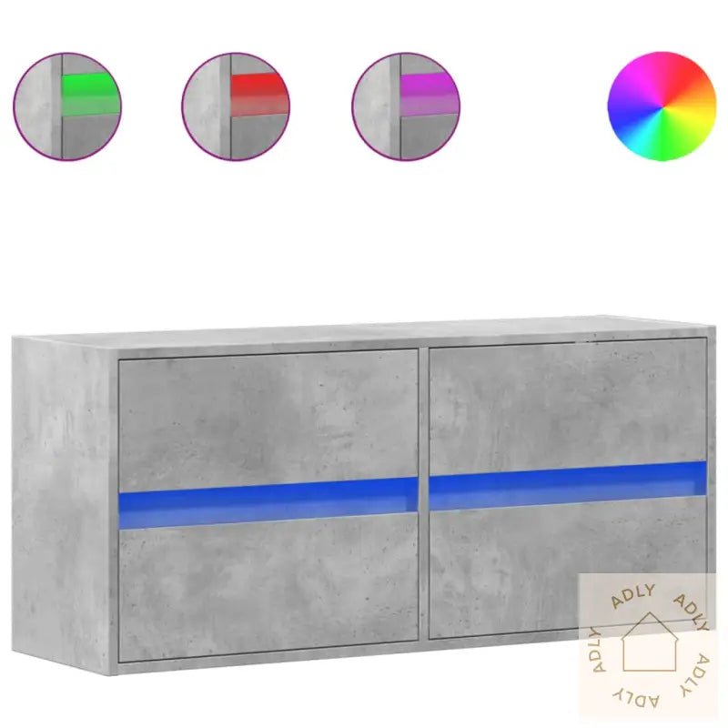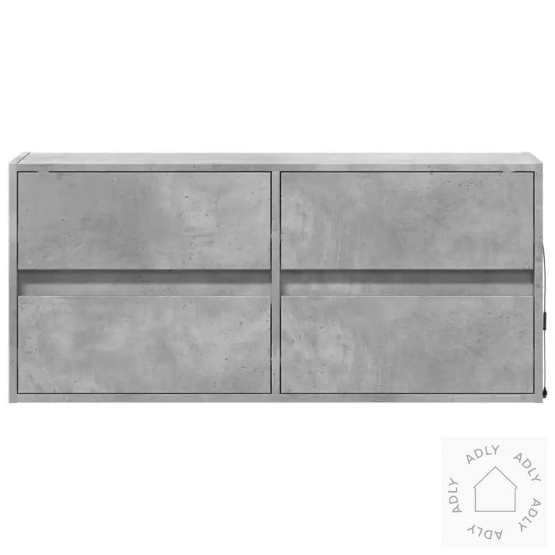 Skruer og plugger til innfesting i vegg følger ikke med. Sjekk hvilke materialer veggen din består av, og bruk riktig monteringstilbehør for et sikkert resultat. Hvis du er usikker, ta kontakt med en fagperson. Husk å følge monteringsinstruksjonene nøye.Benken har USB-kontakt for LED-lysene, men krever en sertifisert 5V USB-strømkilde (ikke inkludert).Farge: Betonggrå – gir et moderne uttrykk som matcher mange typer møbler til hjemmet og utendørsmøbler.Materiale: Konstruert treMål: 100 x 31 x 45 cm (L x B x H)Antall skuffer: 4LED-lys inkludertMontering kreves: Ja