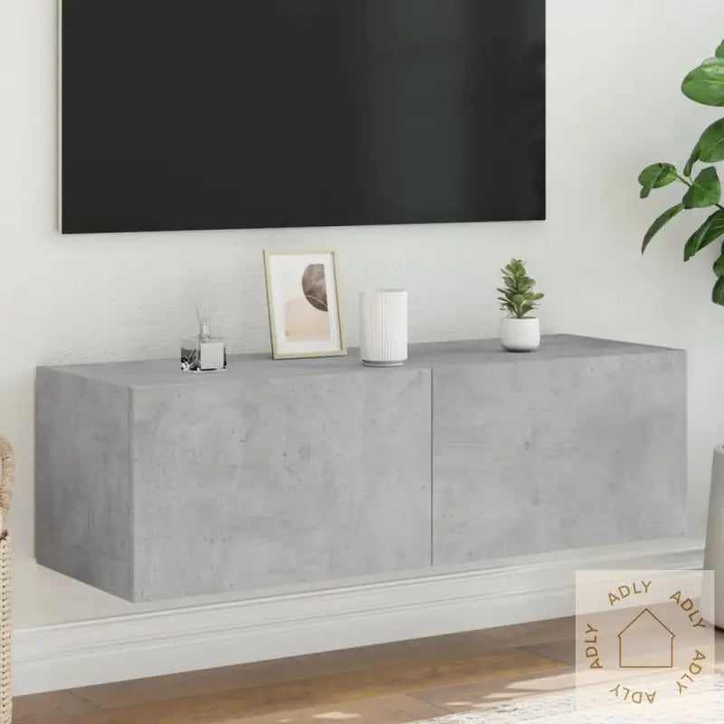 Skruer og plugger for montering følger ikke med, så husk å bruke festemidler som passer til nettopp din veggtype. Er du usikker, anbefales det å spørre en fagperson. Følg instruksjonene nøye under montering.Produktet leveres med integrert USB-kontakt og trenger en sertifisert 5V USB-strømkilde (denne er ikke inkludert).Farge: betonggråMateriale: konstruert treMål: 100 x 35 x 31 cm (B x D x H)Mål rom: 48 x 35 x 27 cm (B x D x H)Montering kreves: ja