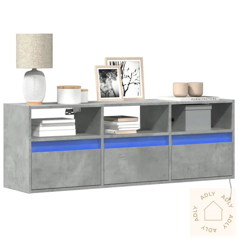 Stabilt og slitesterkt materiale: Benken er laget av konstruert tre – et materiale kjent for sin styrke og pålitelighet. Den glatte overflaten tåler både fuktighet og slitasje, slik at møbelet holder seg pent lenge uten å vri seg eller sprekke. Dette gjør det til et solid valg til ditt hjem.RGB LED-lys for en behagelig atmosfære: TV-benken er utstyrt med innebygde LED-lys som gir deg friheten til å skape akkurat den stemningen du ønsker. Her kan du selv regulere lysstyrke, farger og effekter etter anledning, enten du vil ha rolig belysning til filmkvelder eller livlig lys når du har besøk.Rikelig med oppbevaringsplass: Skapet har tre åpne rom og tre romslige skuffer – perfekt for å lagre alt fra bøker, magasiner, spill og småting. Alt holder seg organisert og lett tilgjengelig, noe som gjør dette møbelet svært praktisk for daglig bruk.Plassbesparende design: Det vegghengte designet utnytter veggplassen effektivt, og gir et luftig, moderne uttrykk i stua. Du får ekstra gulvplass som gjør rengjøring enklere og gir rommet et ryddigere preg – et must for deg med begrenset plass eller åpen planløsning.DIY-design: Det flytende TV-skapet gir fleksibilitet og lar deg forme ditt eget underholdningssenter. Bruk det alene, eller bygg det ut sammen med andre veggmonterte møbler for et sømløst, gjennomført uttrykk tilpasset dine behov.Godt å vite: