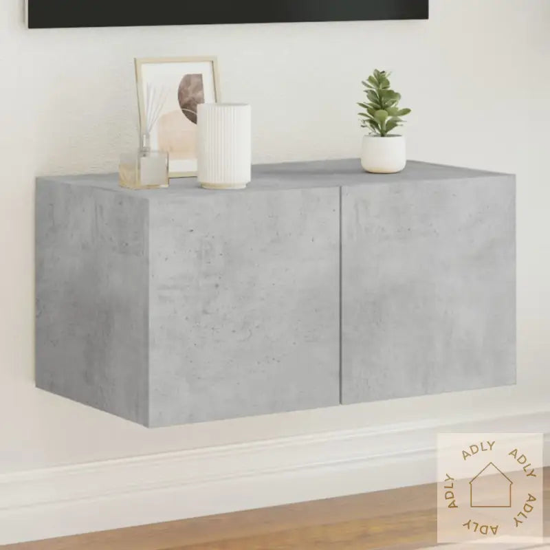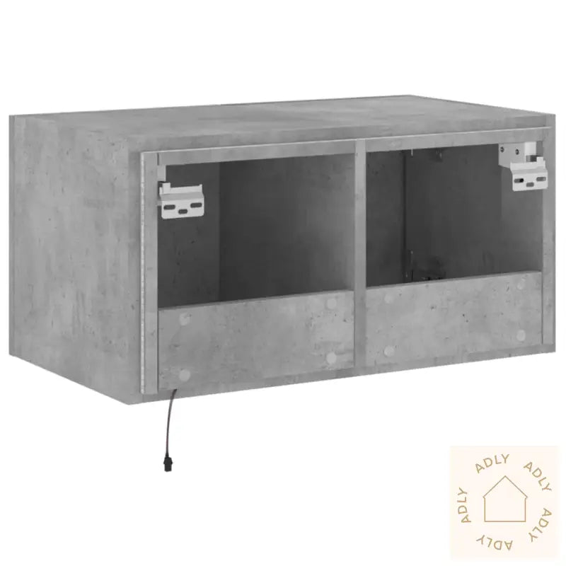 Skruer og plugger for veggmontering er ikke inkludert. Husk å velge skruer og plugger som passer spesielt til dine vegger – ta kontakt med fagfolk ved behov, og følg instruksjonene nøye.Produktet leveres med USB-kontakt for strøm til RGB LED-lysene, og trenger en sertifisert 5V USB-strømkilde (ikke inkludert).Farge: betonggråMateriale: konstruert treMål: 60 x 35 x 31 cm (B x D x H)Mål rom: 28 x 35 x 27 cm (B x D x H)Montering kreves: ja