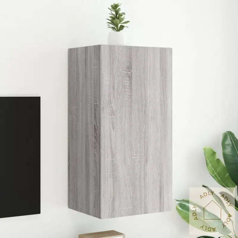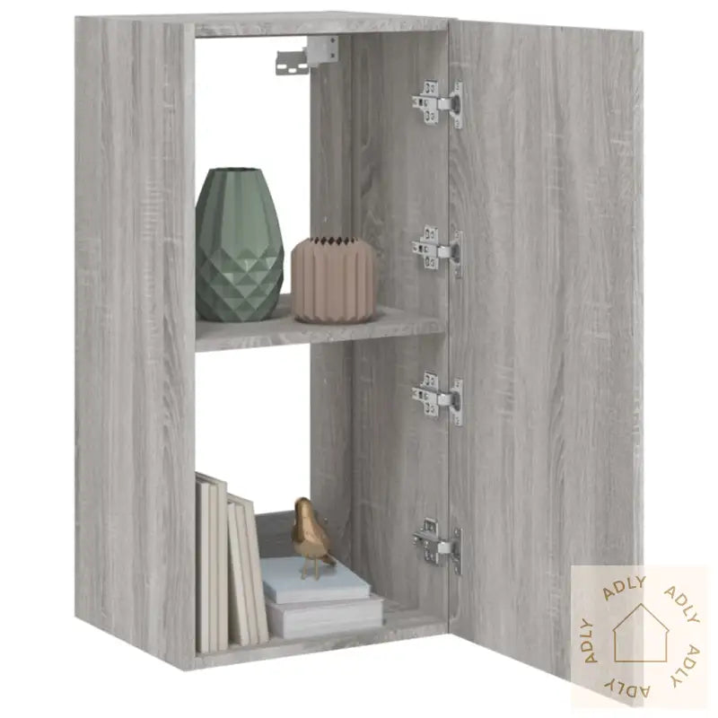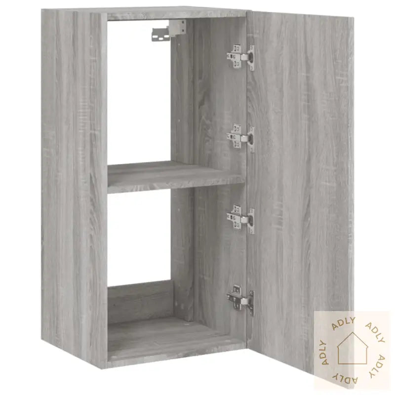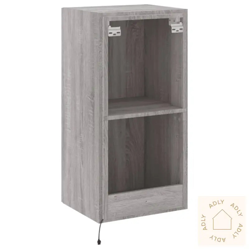 Skruer og plugger til veggmontering følger ikke med. For å sikre trygg montering, bør du bruke skruer og plugger som passer for akkurat dine vegger. Rådfør deg gjerne med en fagperson hvis du er usikker, og følg alltid monteringsanvisningen nøye.Merk at produktet har en USB-kontakt for strøm til RGB LED-lysene. Du trenger en godkjent 5V USB-strømkilde (ikke inkludert).Farge: grå sonomaMateriale: konstruert treMål: 40,5 x 35 x 80 cm (B x D x H)Mål på hvert rom: 37 x 35 x 37,5 cm (B x D x H)Montering kreves: ja