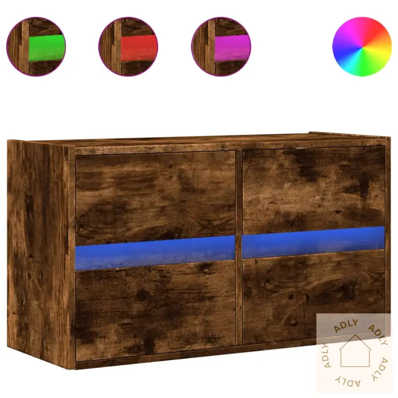 Skruer og plugger for montering på innvendige vegger følger ikke med. Vi anbefaler at du velger riktig type festemateriell til din veggtype, og tar kontakt med fagfolk om du er usikker. Følg alltid monteringsanvisningen nøye for å få et trygt og varig resultat.TV-benken leveres med USB-kontakt for LED-lysene. Denne krever en sertifisert 5V USB-strømkilde (ikke inkludert).Farge: røkt eikMateriale: konstruert treMål: 80 x 31 x 45 cm (L x B x H)Antall skuffer: 4Inkludert LED-lysMontering må utføres av kundeMed denne veggmonterte TV-benken får du altså mer enn bare oppbevaring – du får et moderne, fleksibelt og arealeffektivt møbel som setter prikken over i-en på rommet. Enten du innreder nytt, eller oppdaterer stilen hjemme, vil denne benken bidra til et ryddigere, mer funksjonelt og innbydende hjemmemiljø. Kvalitetsmøbler til hjemmet gjør virkelig forskjellen!